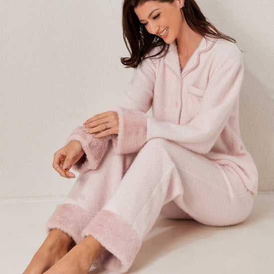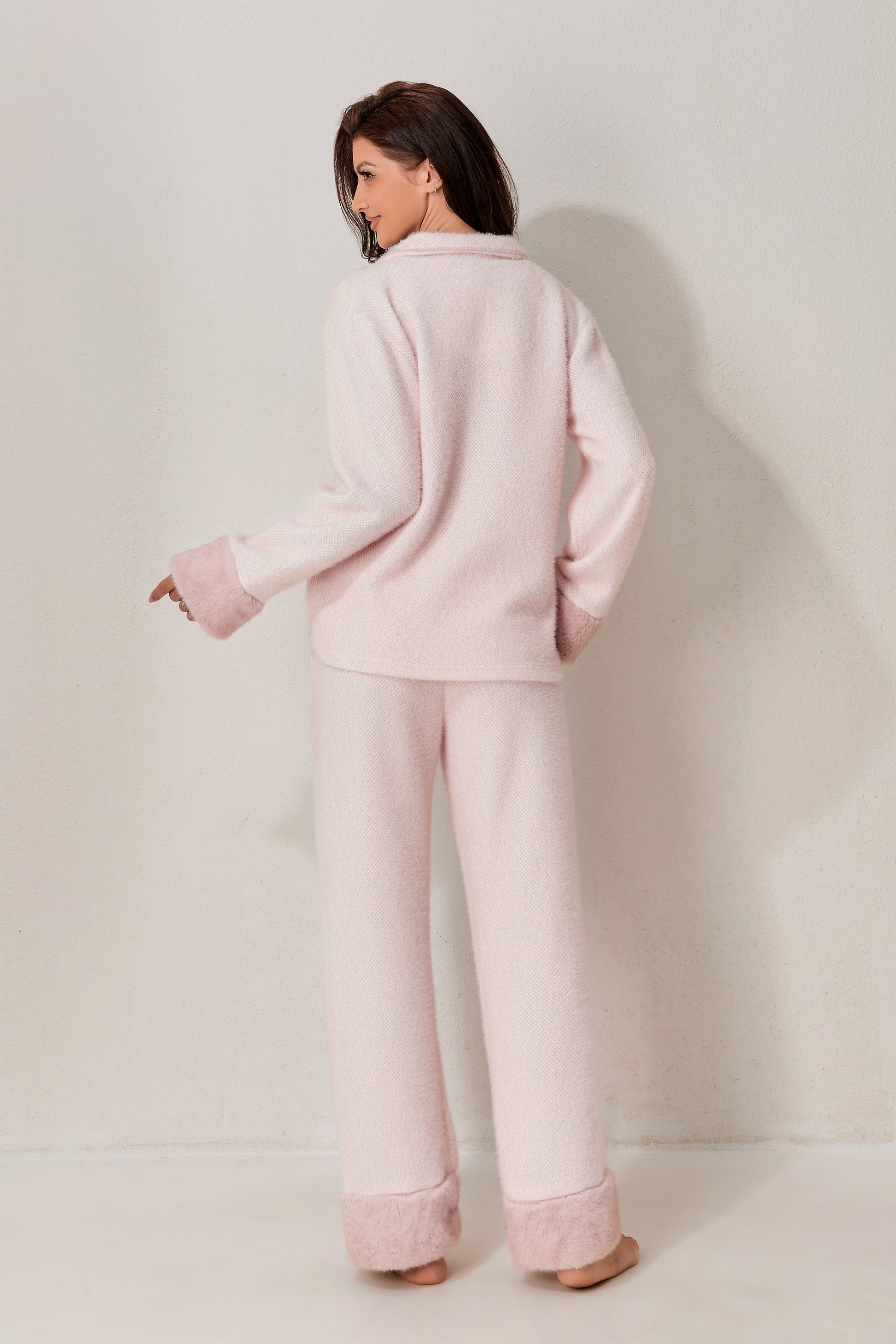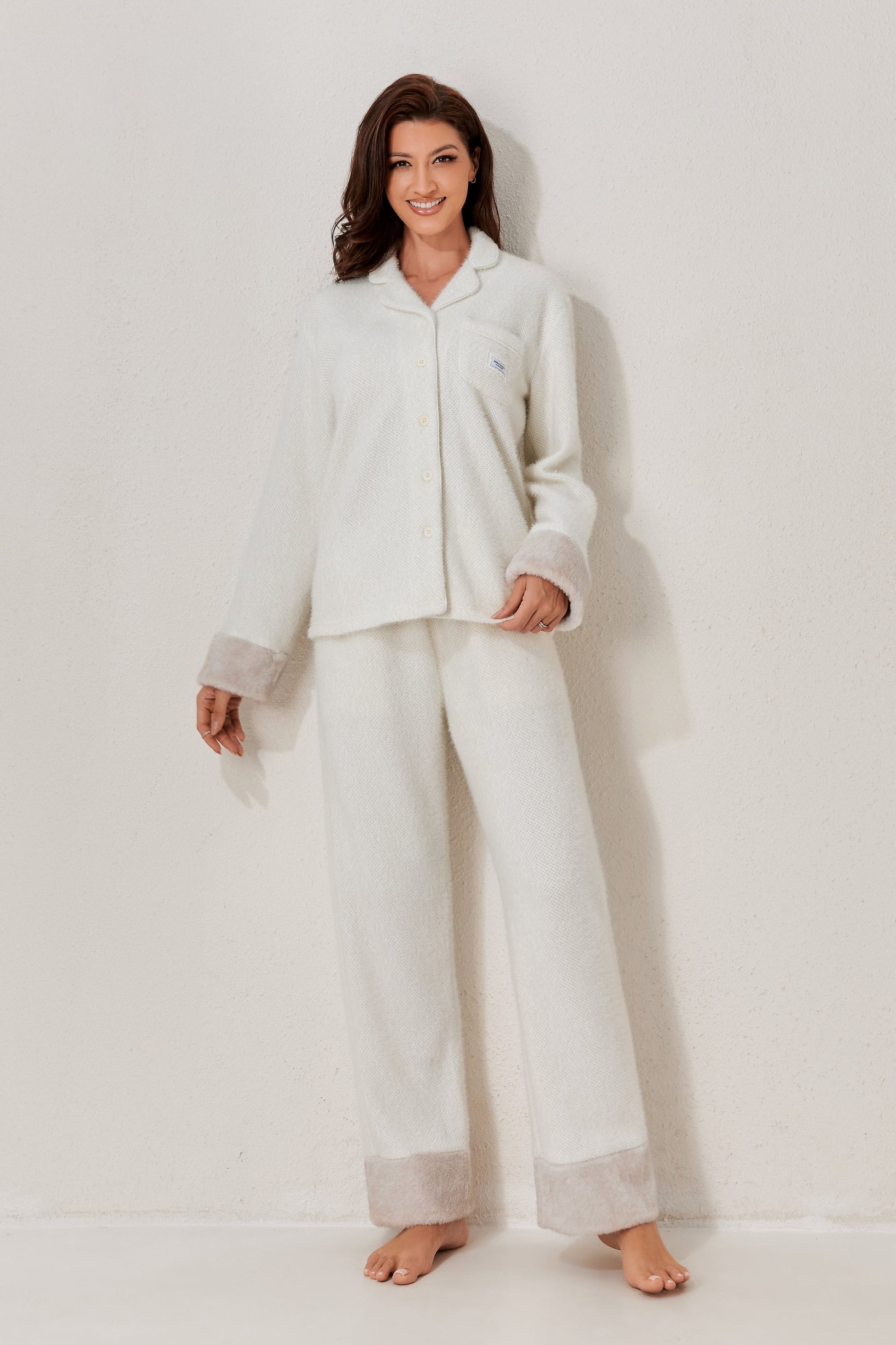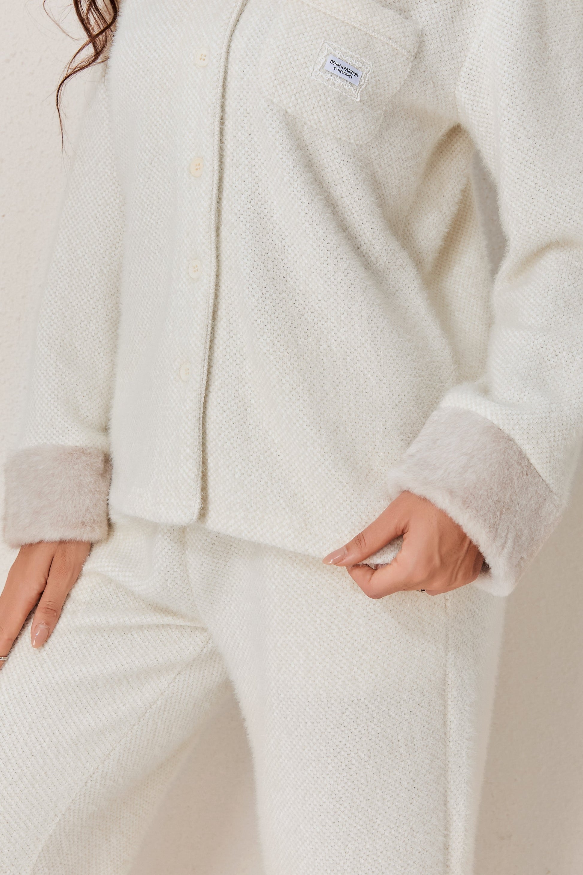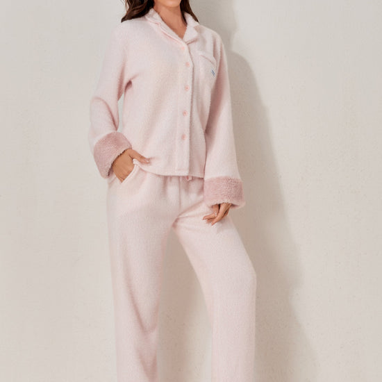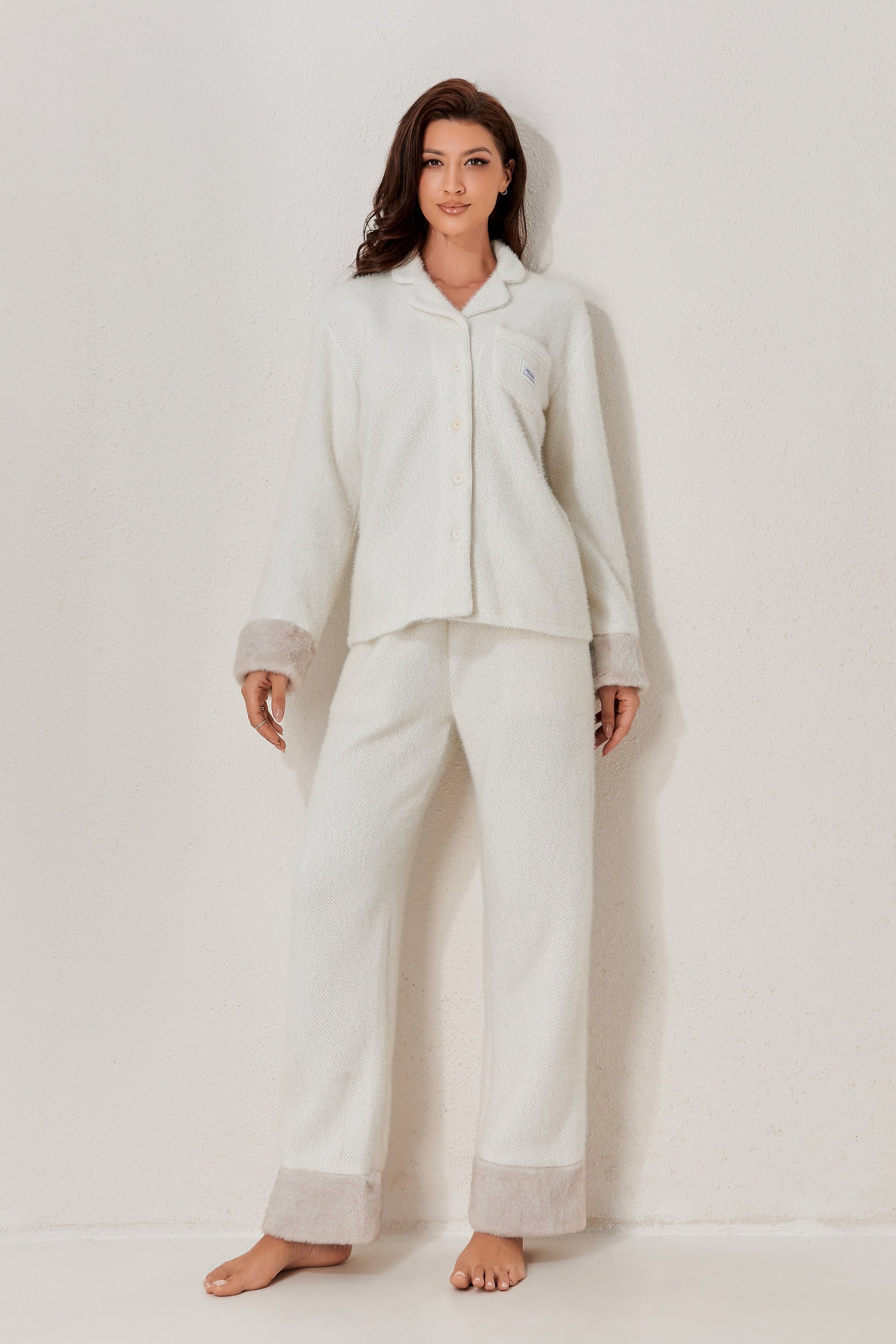 طقم بيجاما مفتوح من قطعتين من الأمام