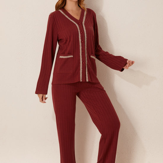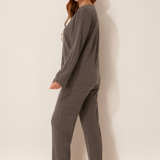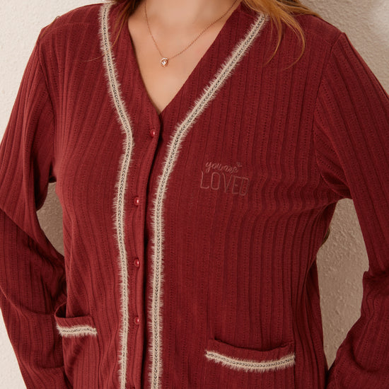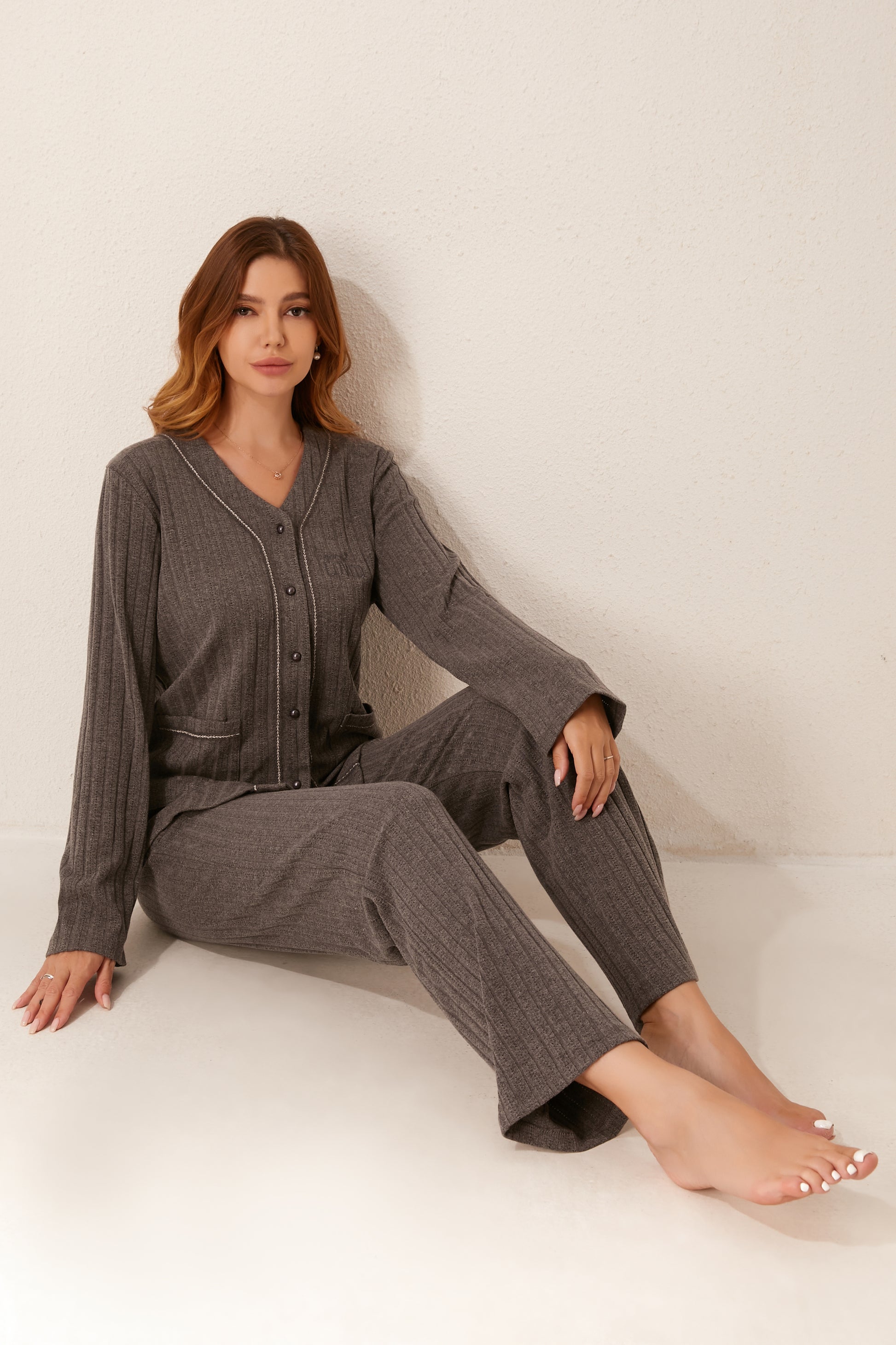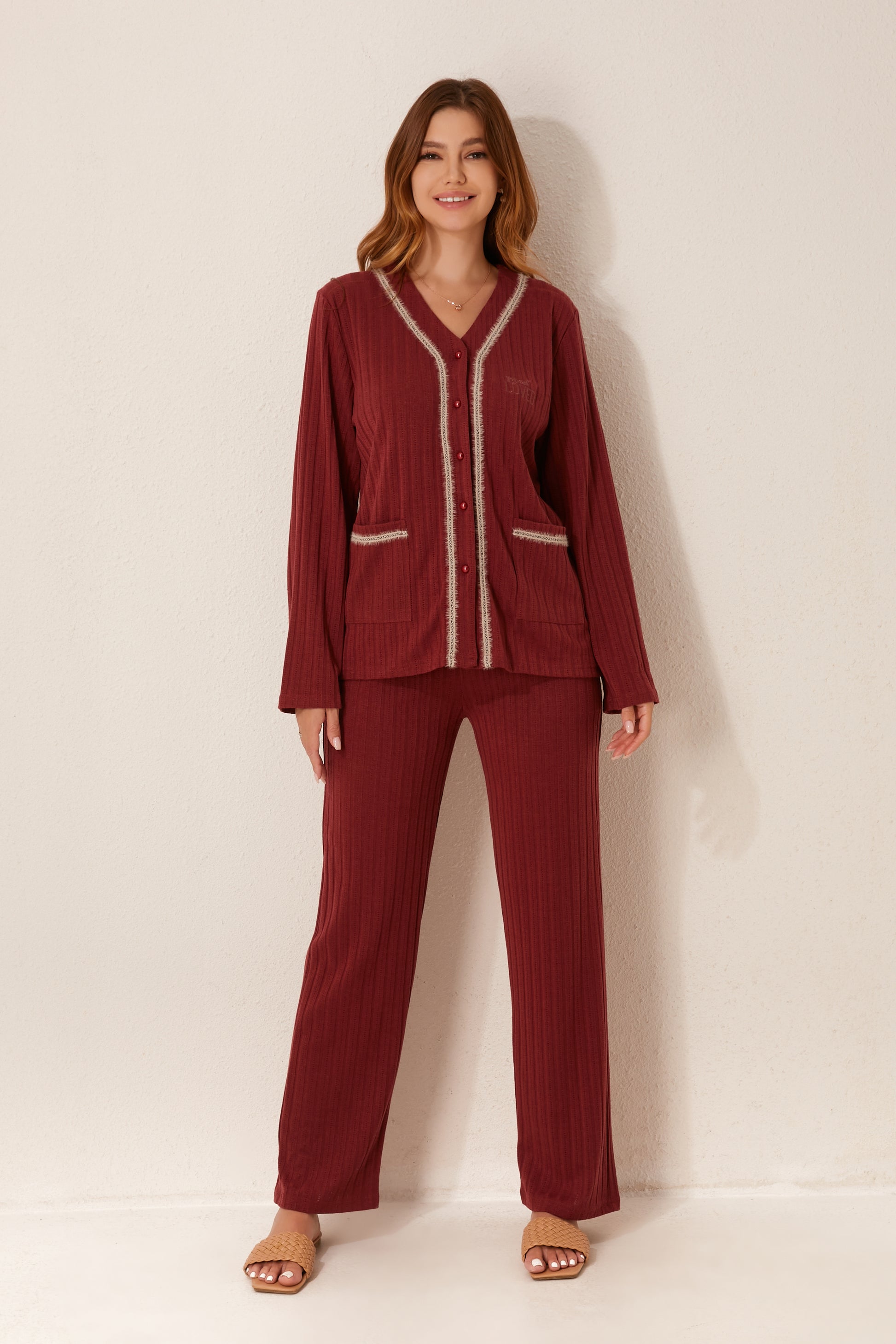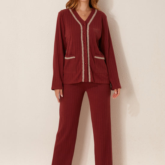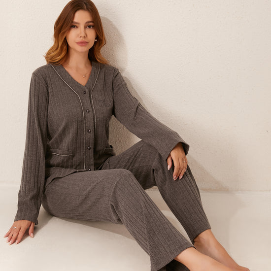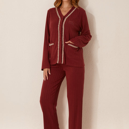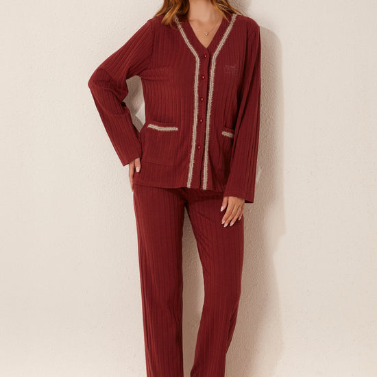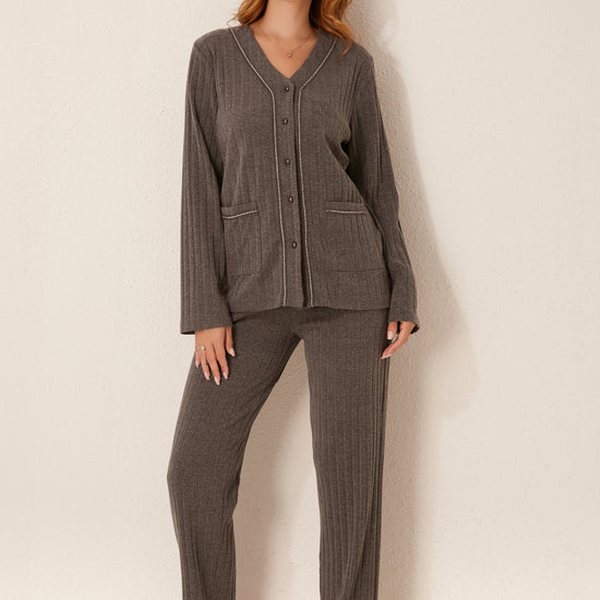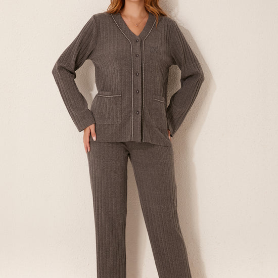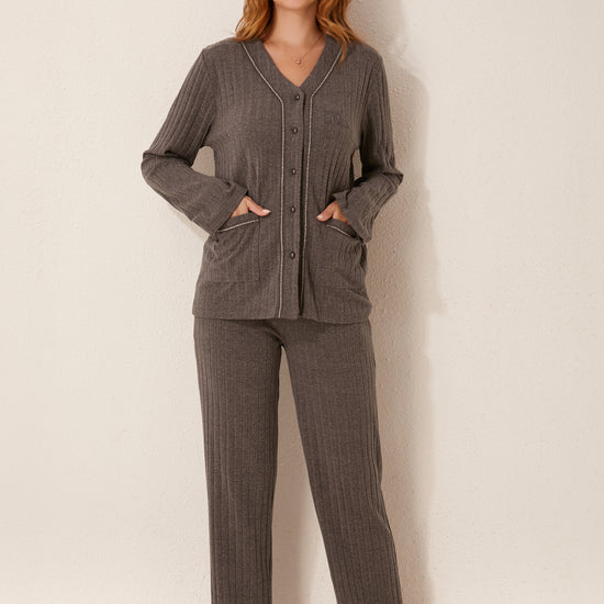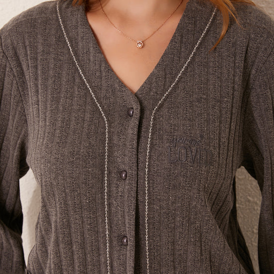 طقم بيجاما مفتوح من قطعتين من الأمام