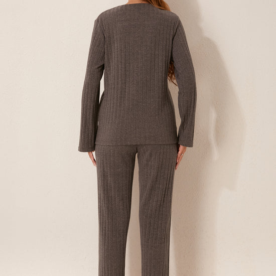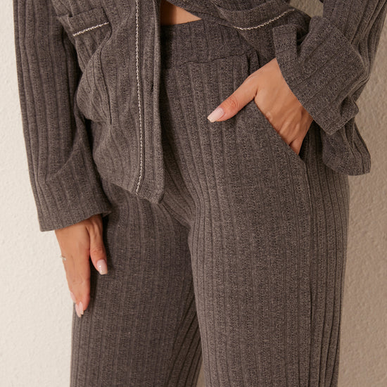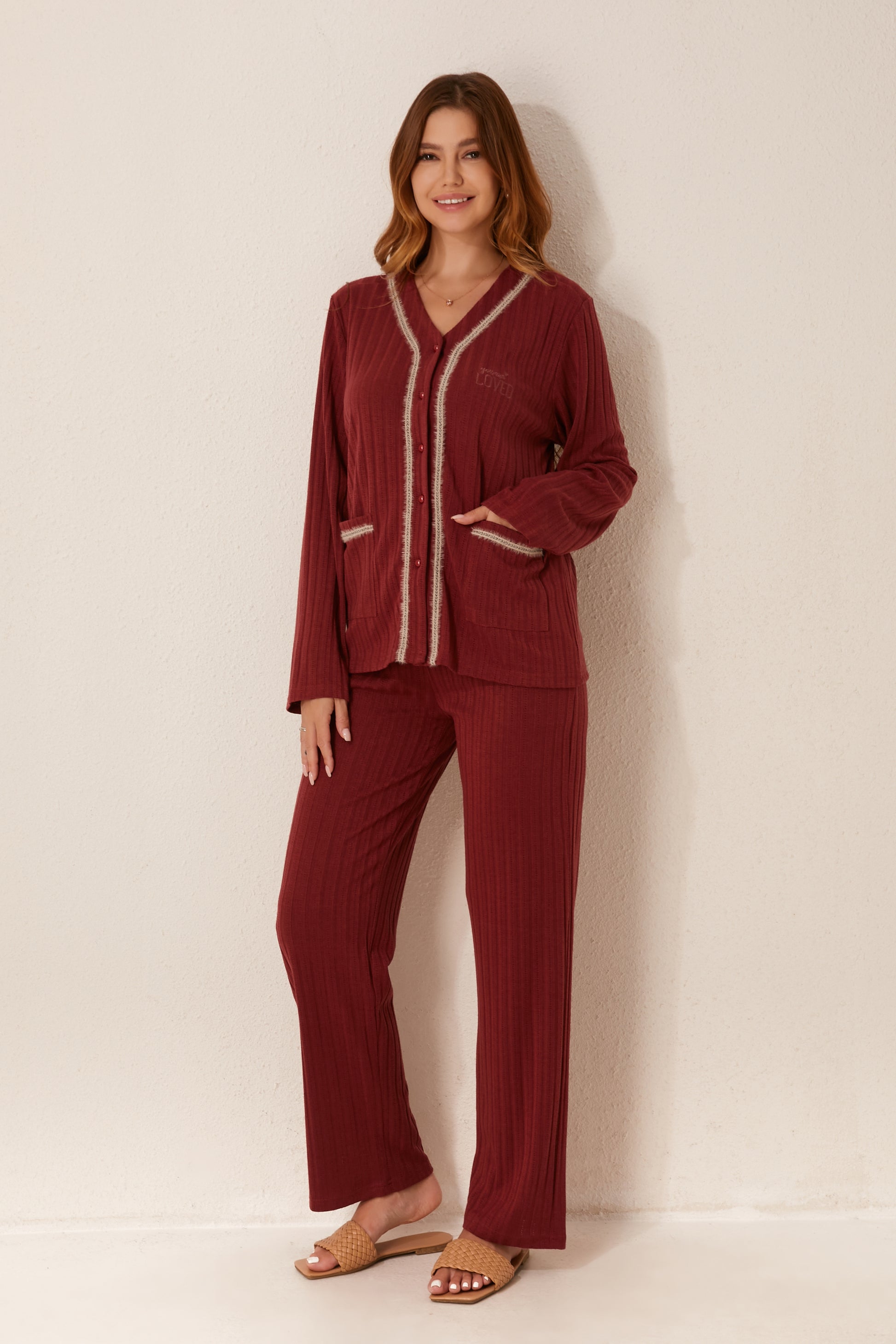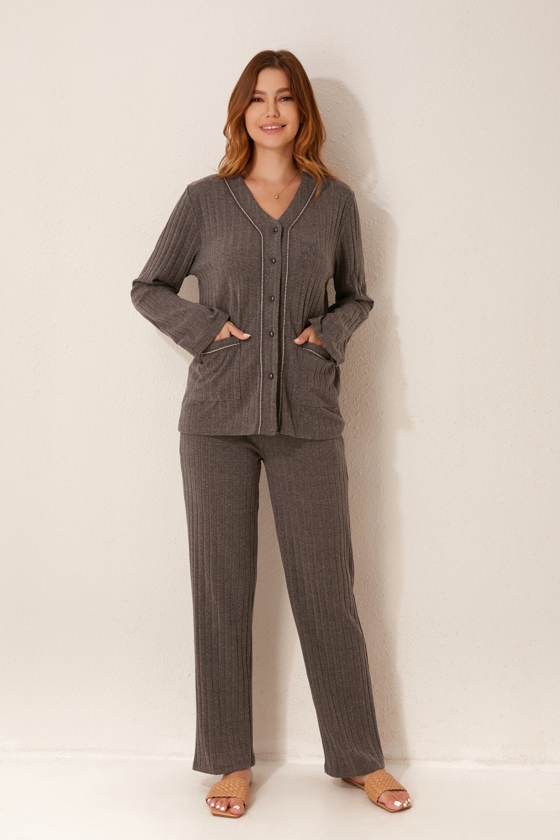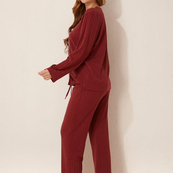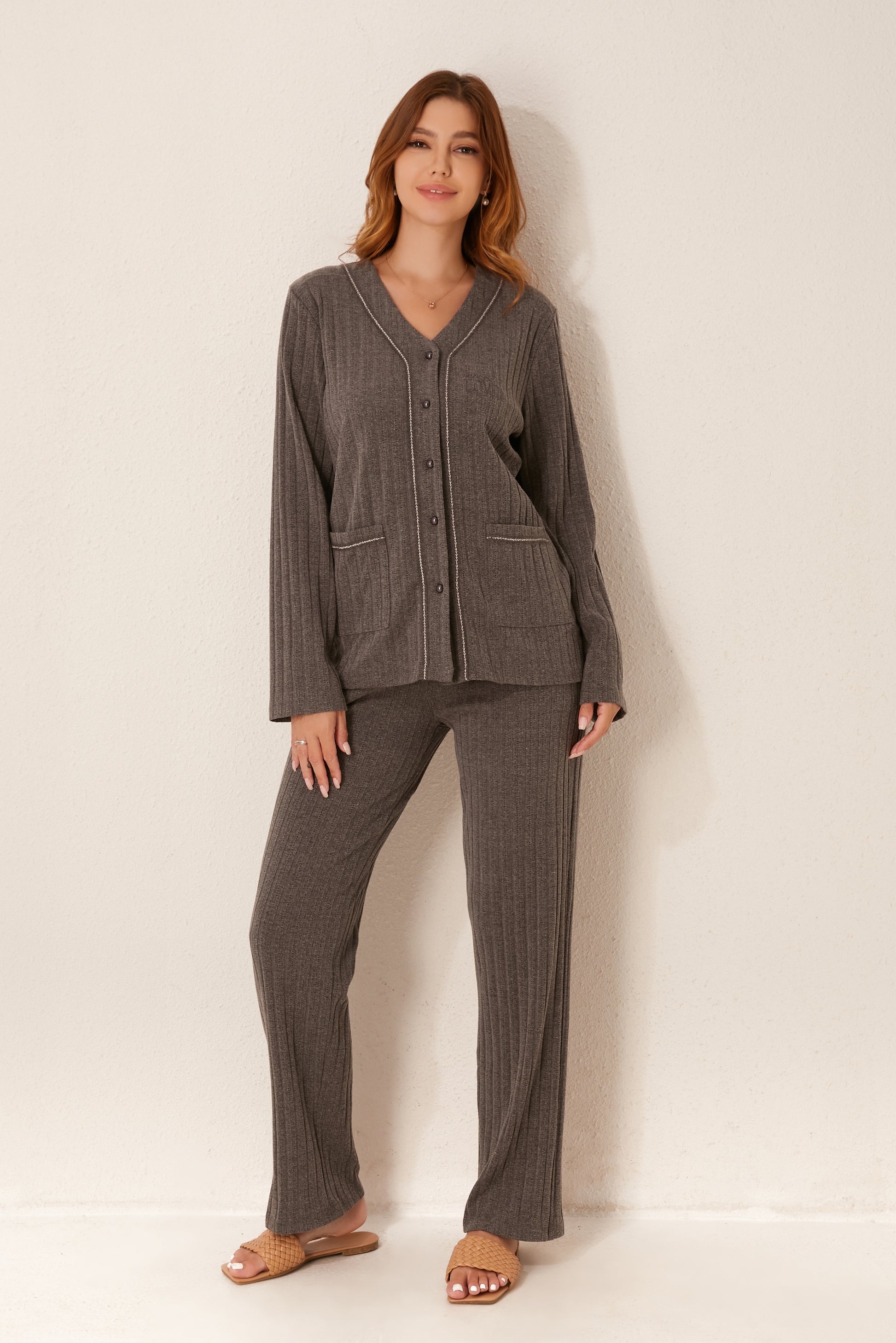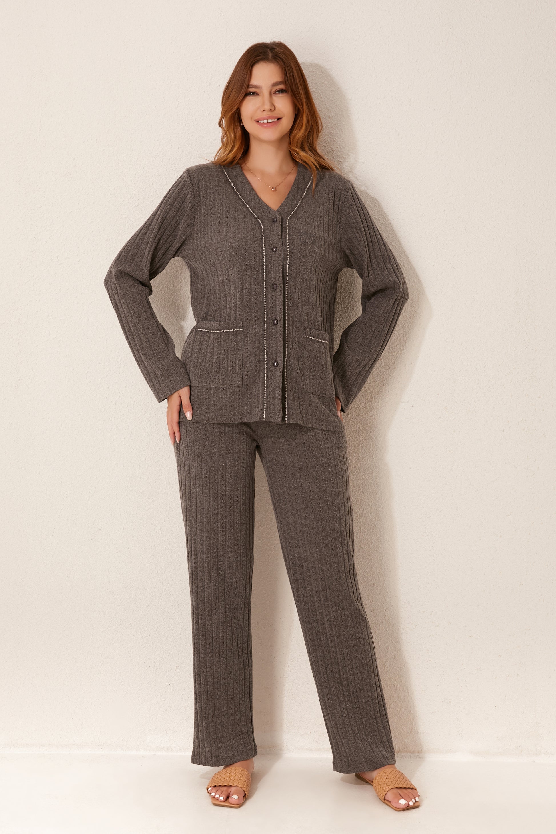 طقم بيجاما مفتوح من قطعتين من الأمام