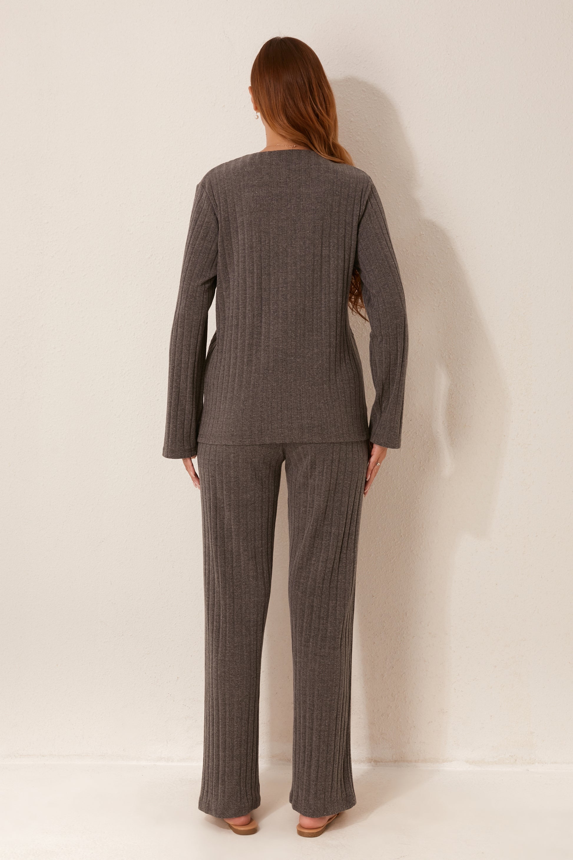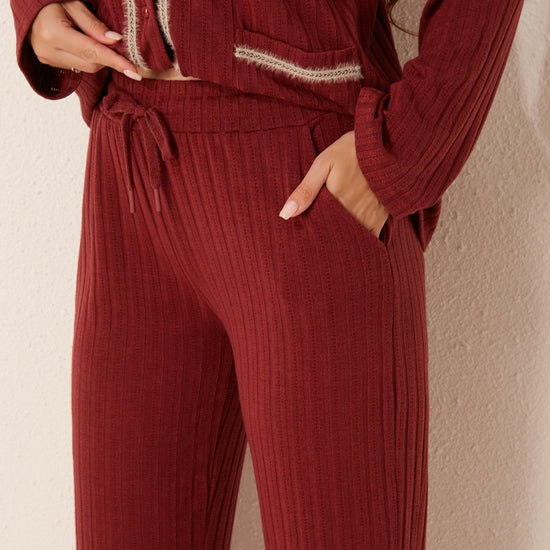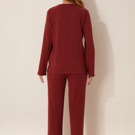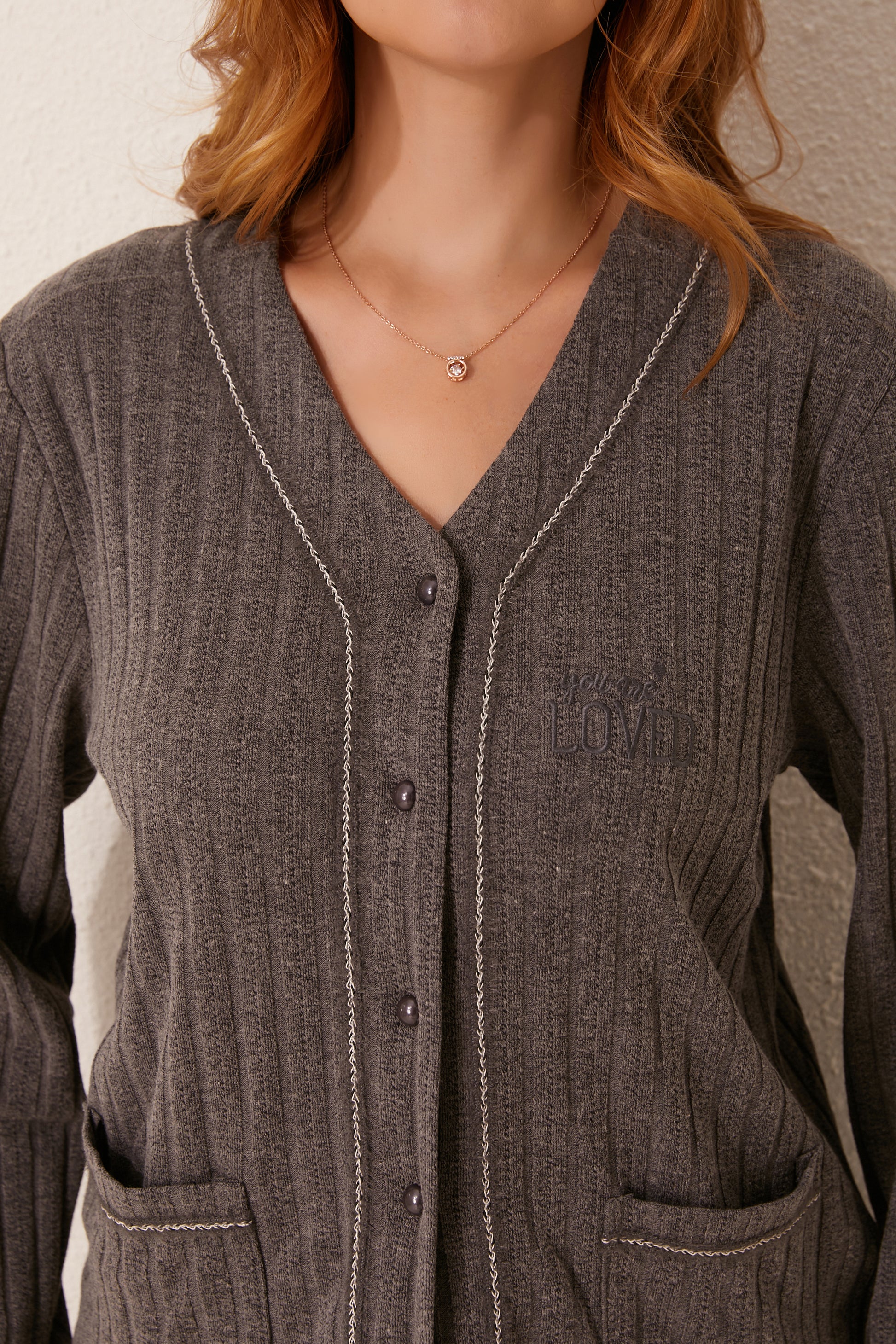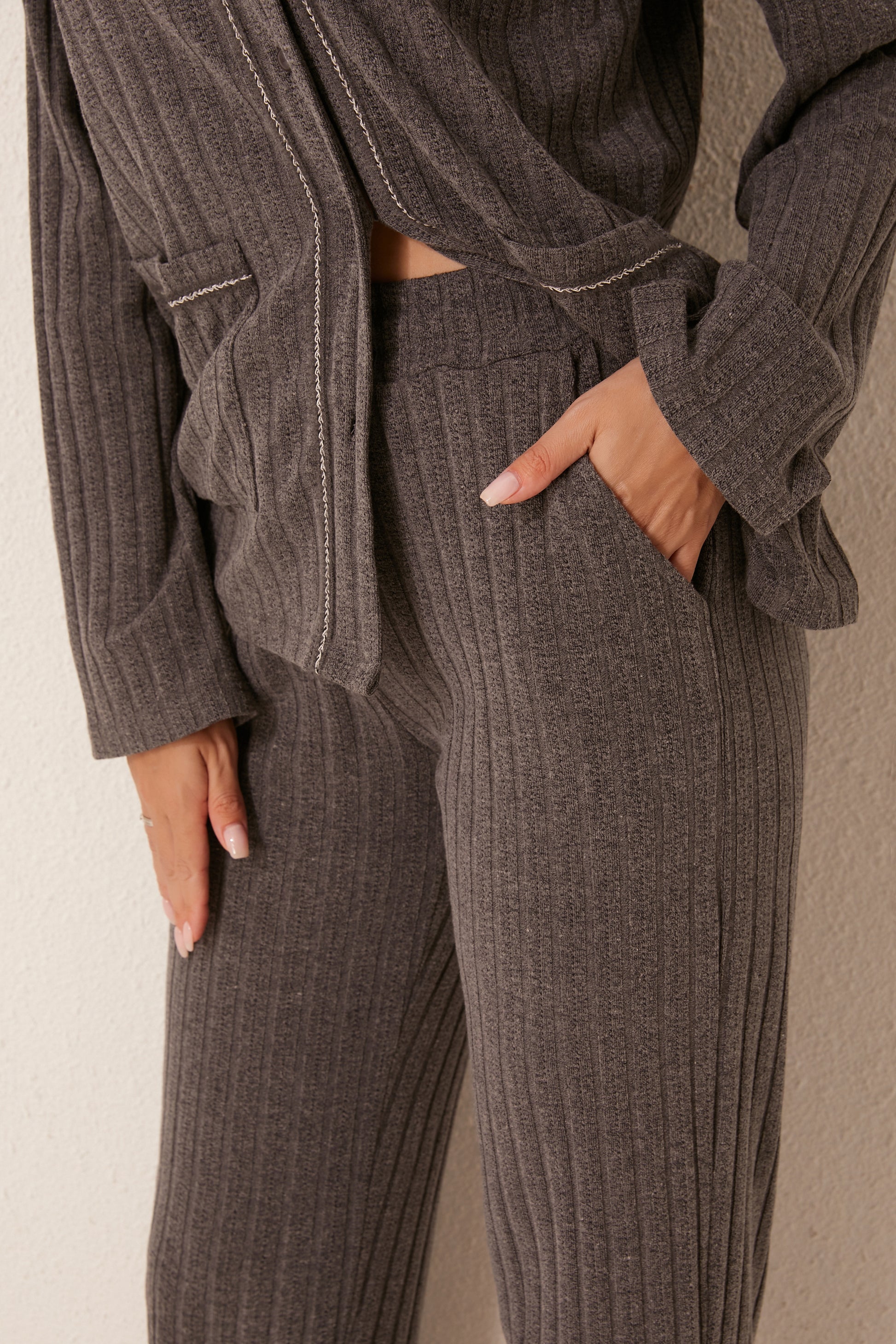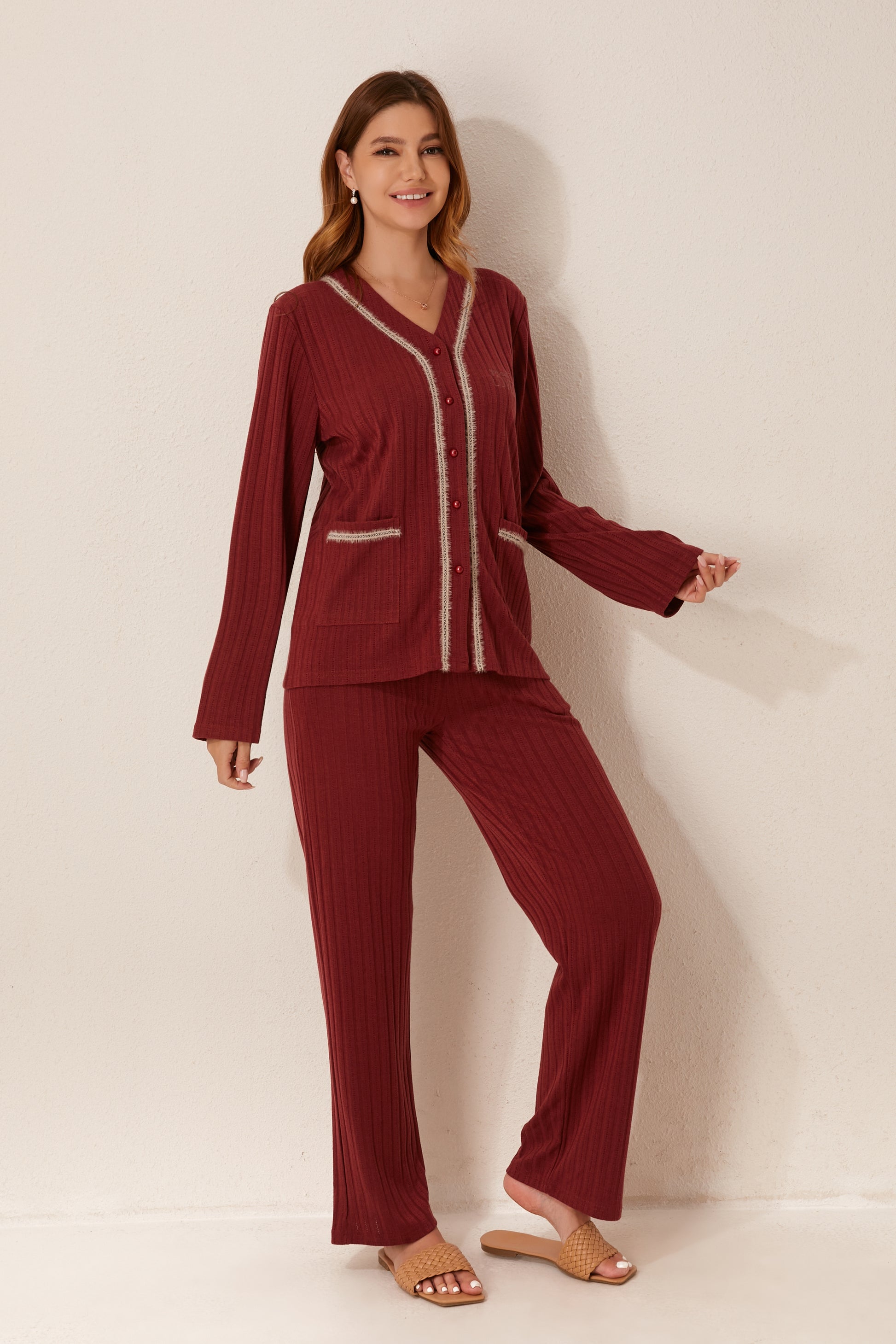 طقم بيجاما مفتوح من قطعتين من الأمام