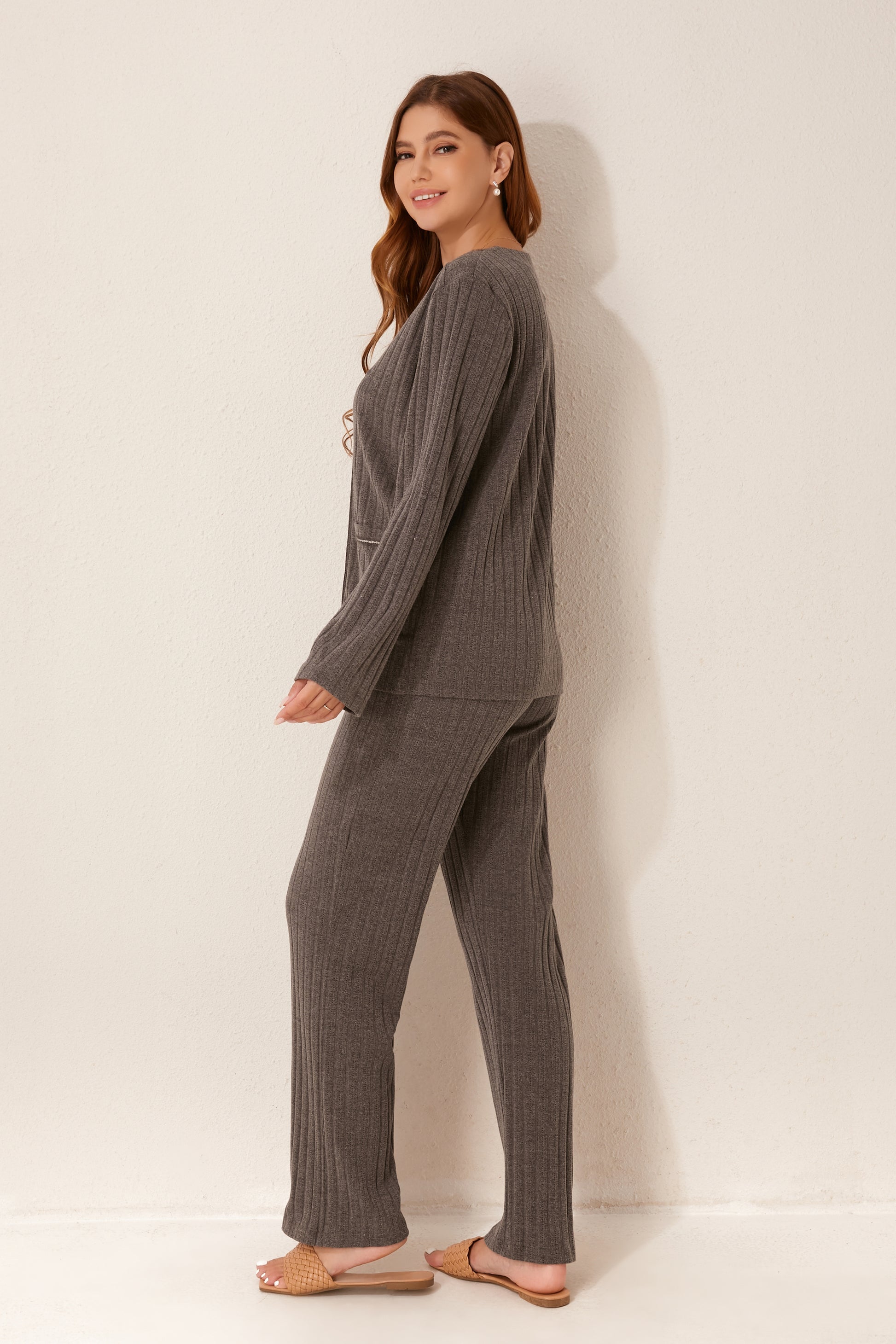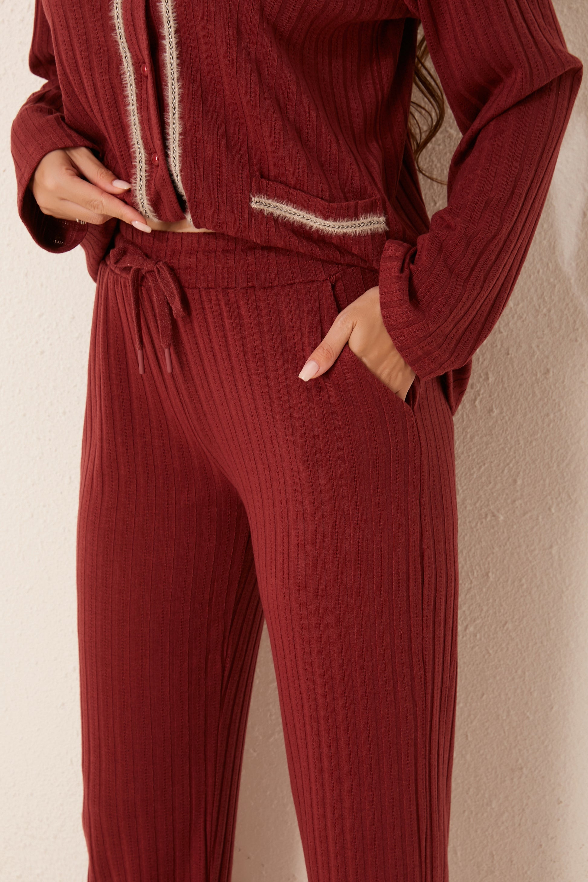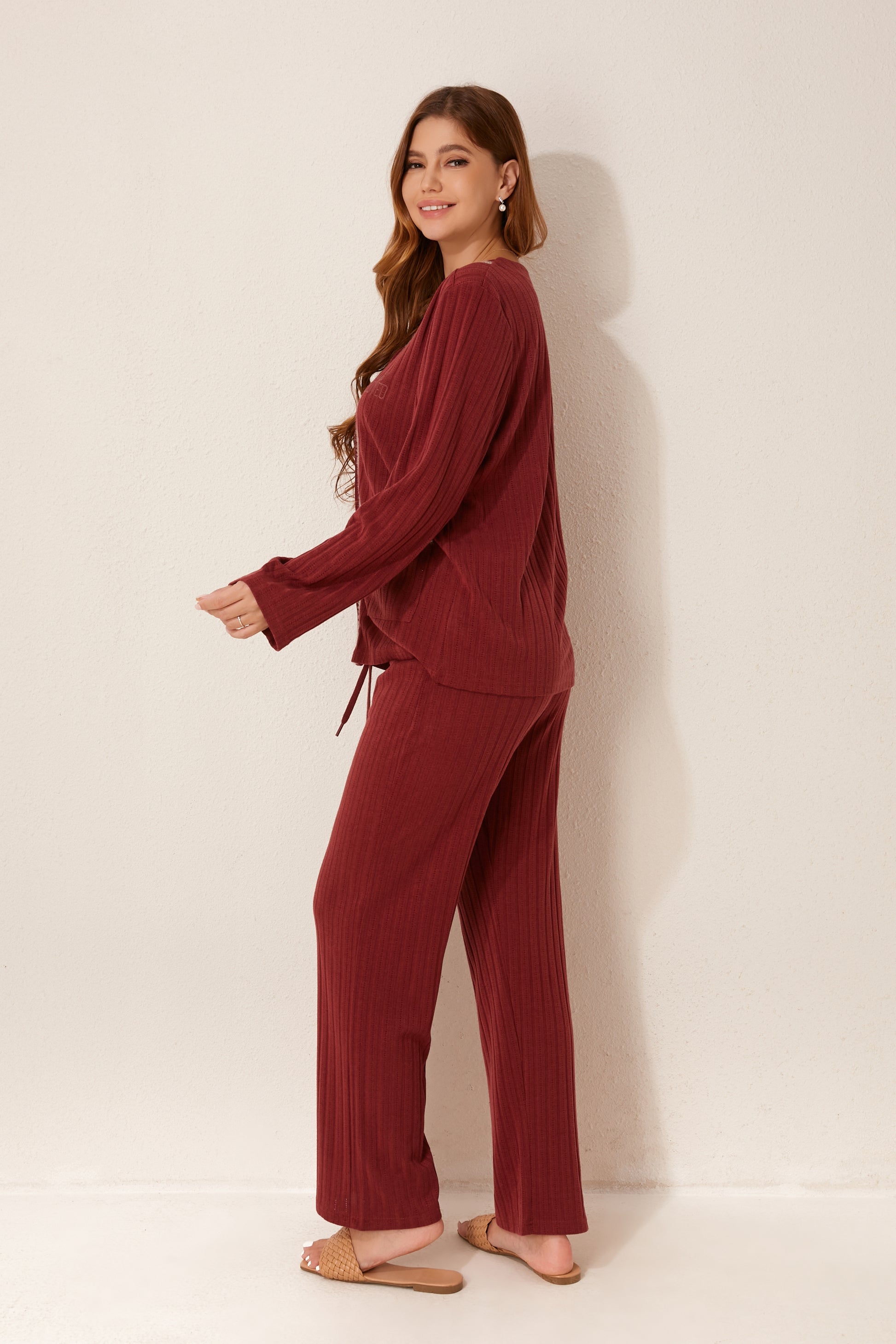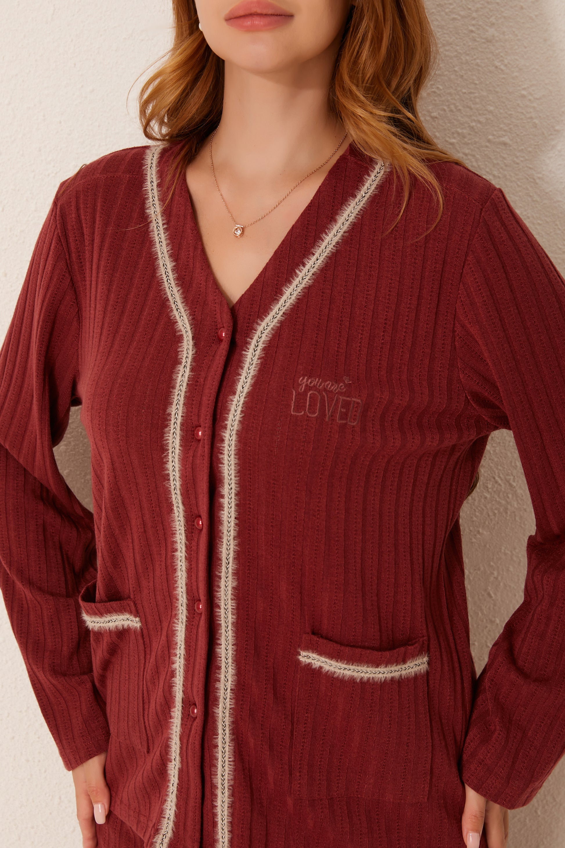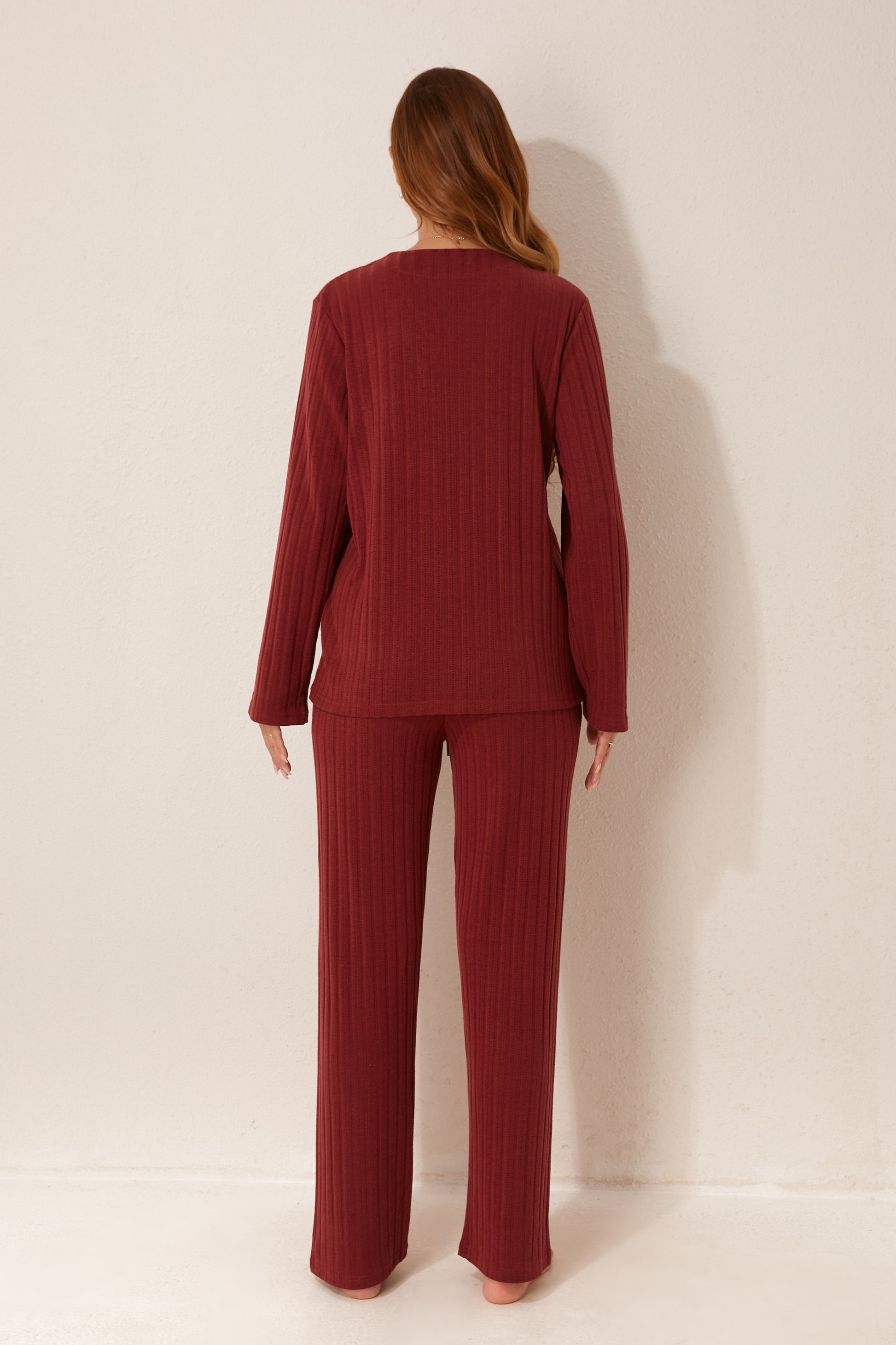 طقم بيجاما مفتوح من قطعتين من الأمام