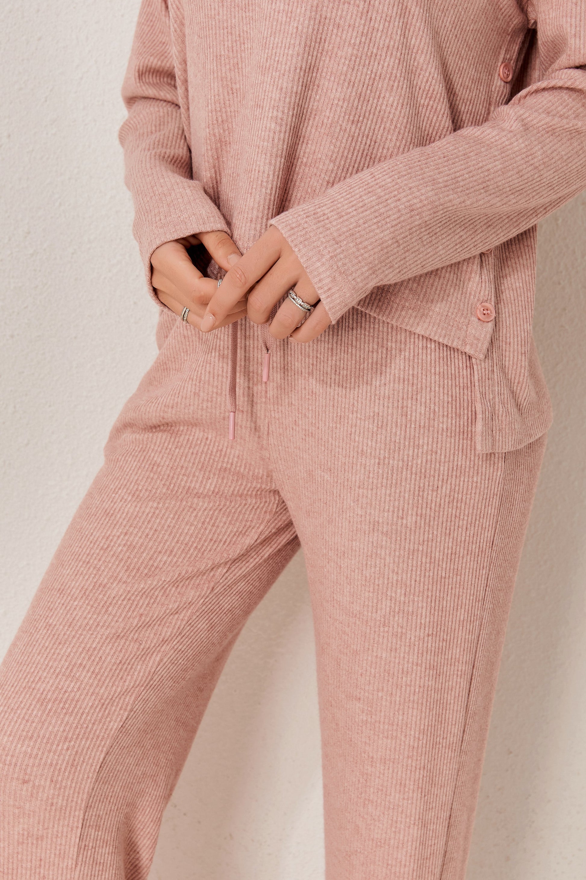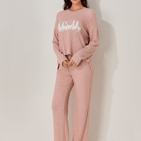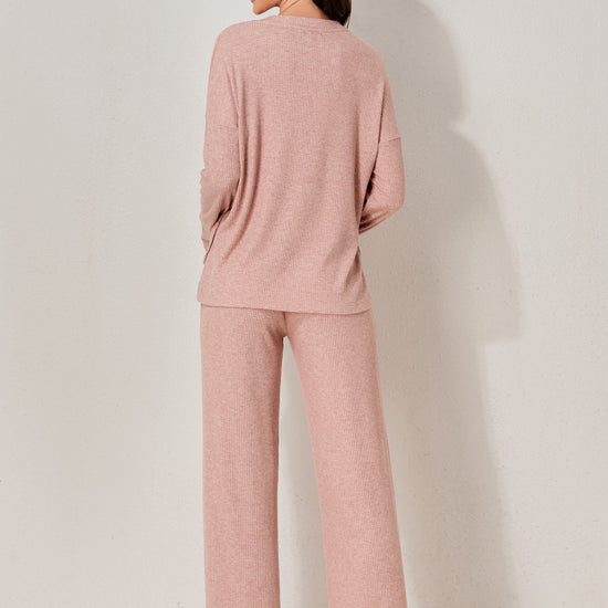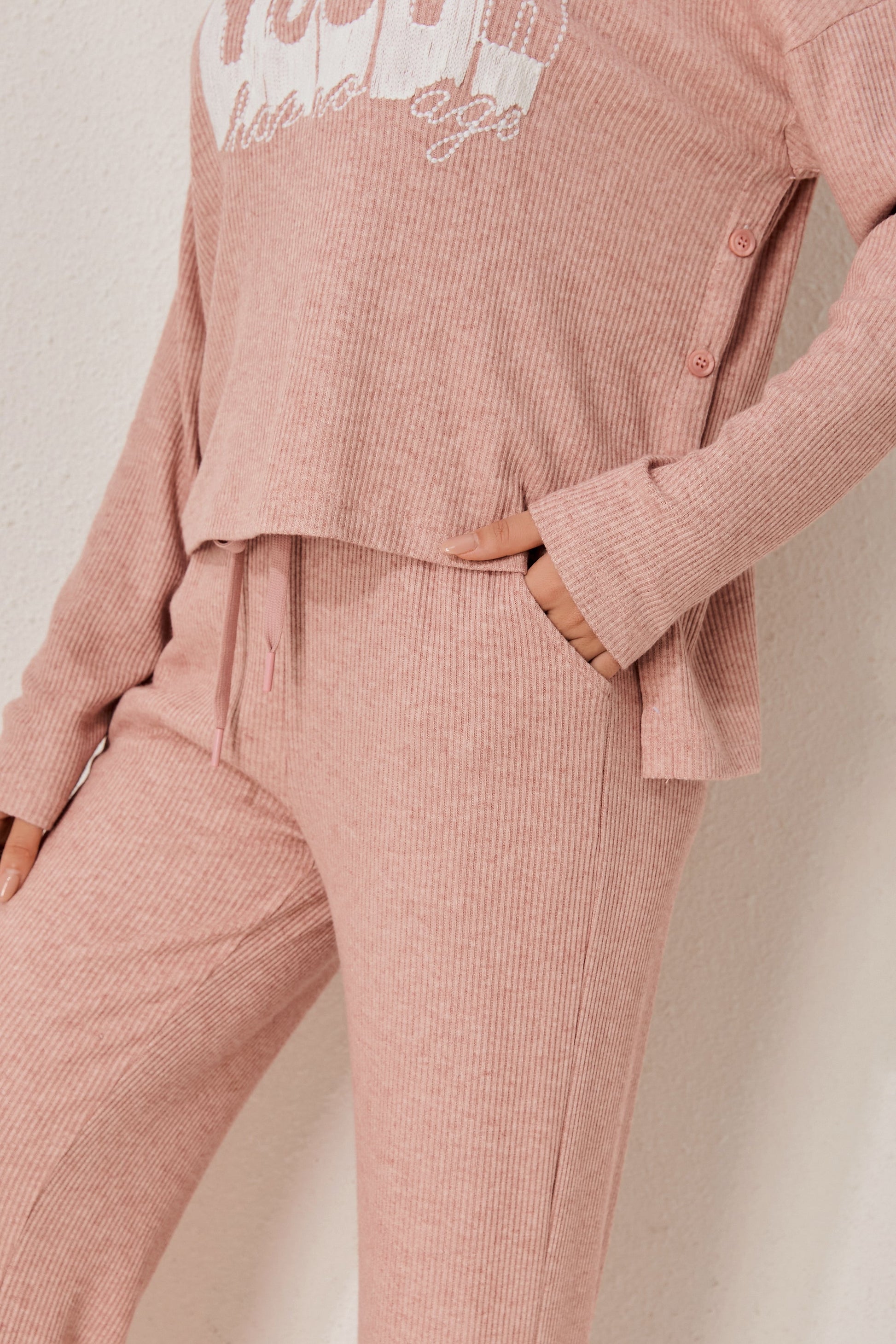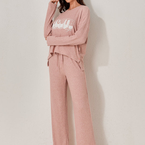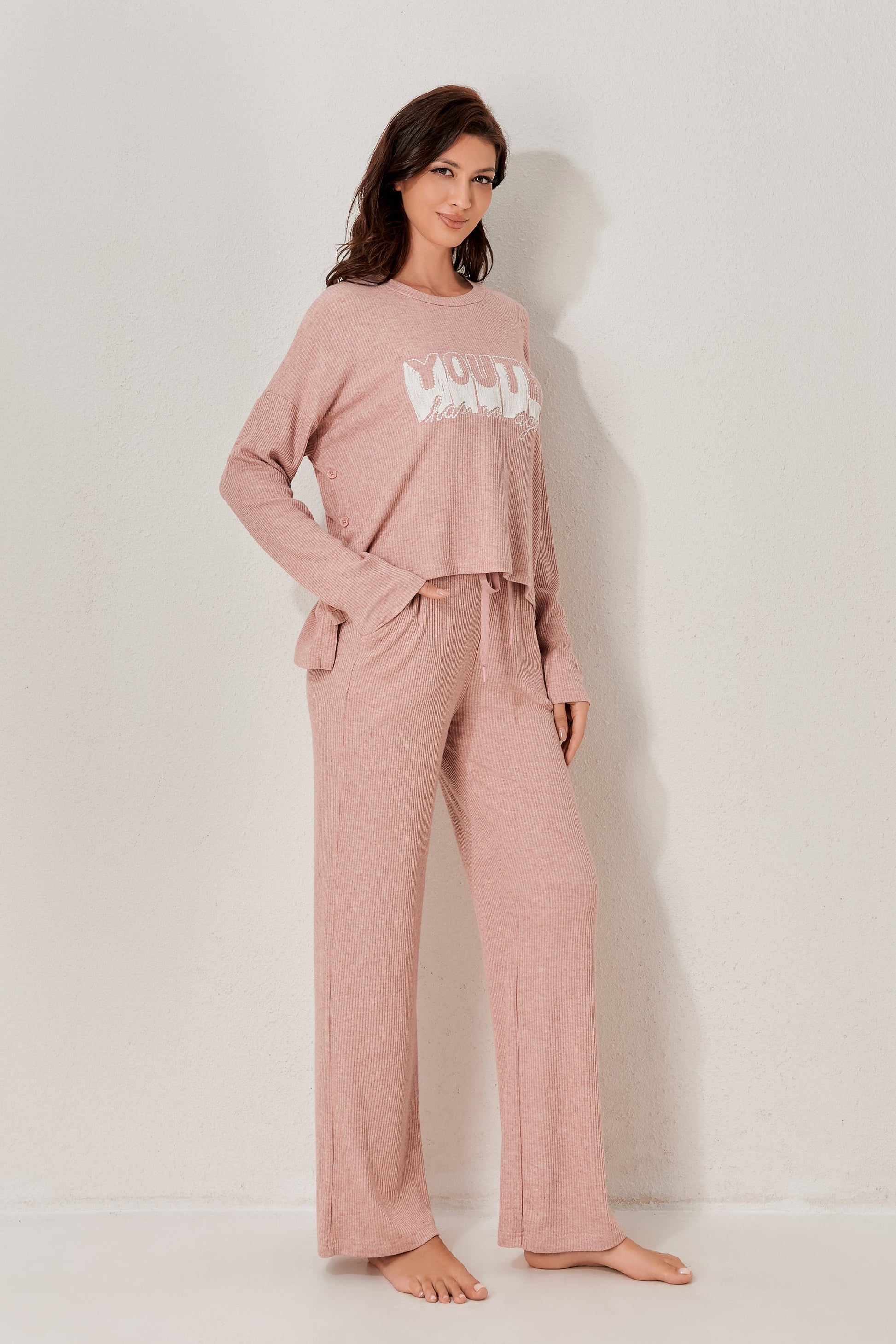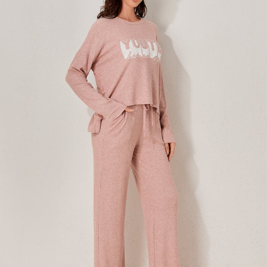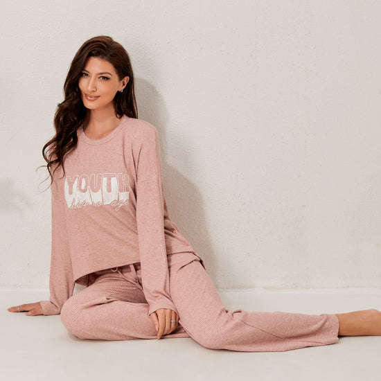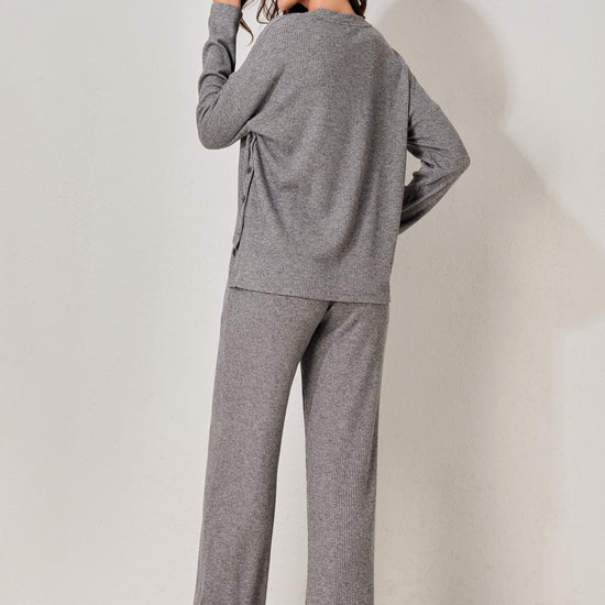 مجموعة بيجامة طويلة الأكمام مع صورة ظلية مريحة ولون فحم حديث. يتضمن سروالا مريحا. مصنوع من قماش المخزون.
