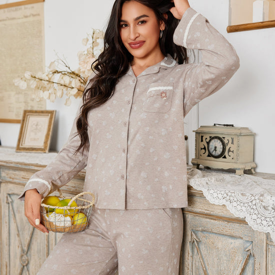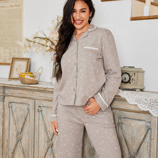طقم بيجاما من قطعتين من ذوي الياقات المفتوحة