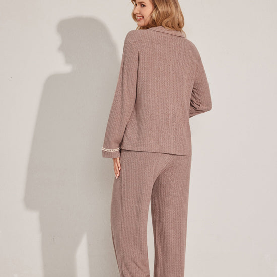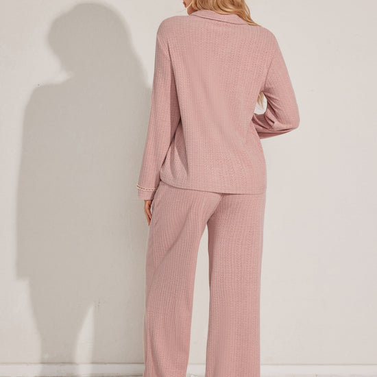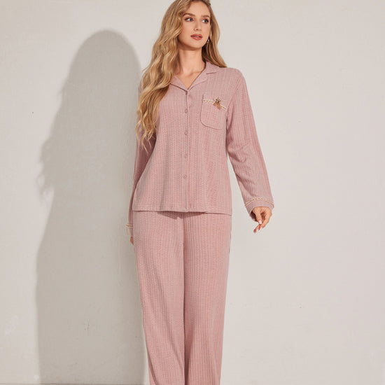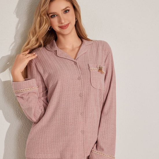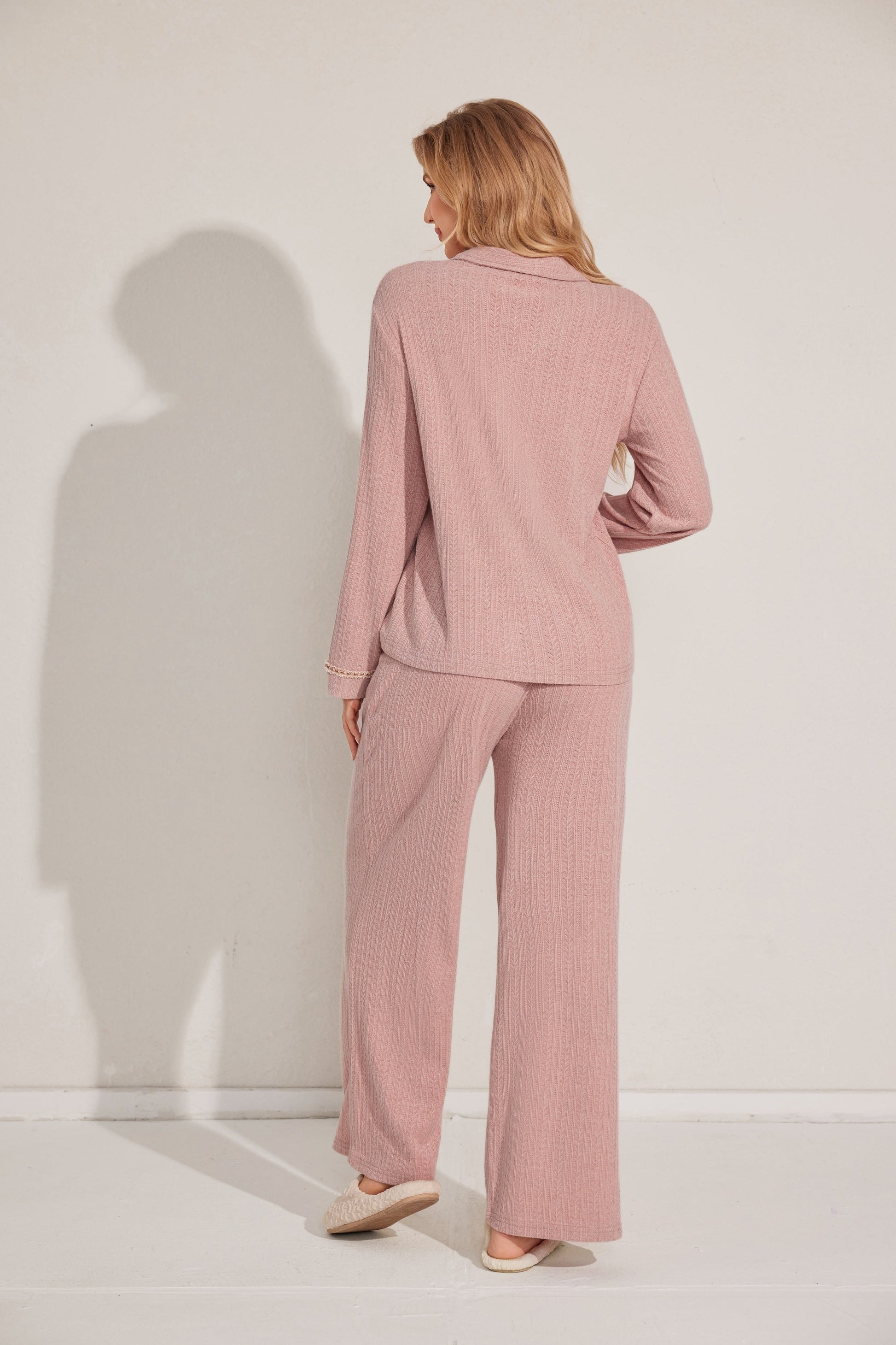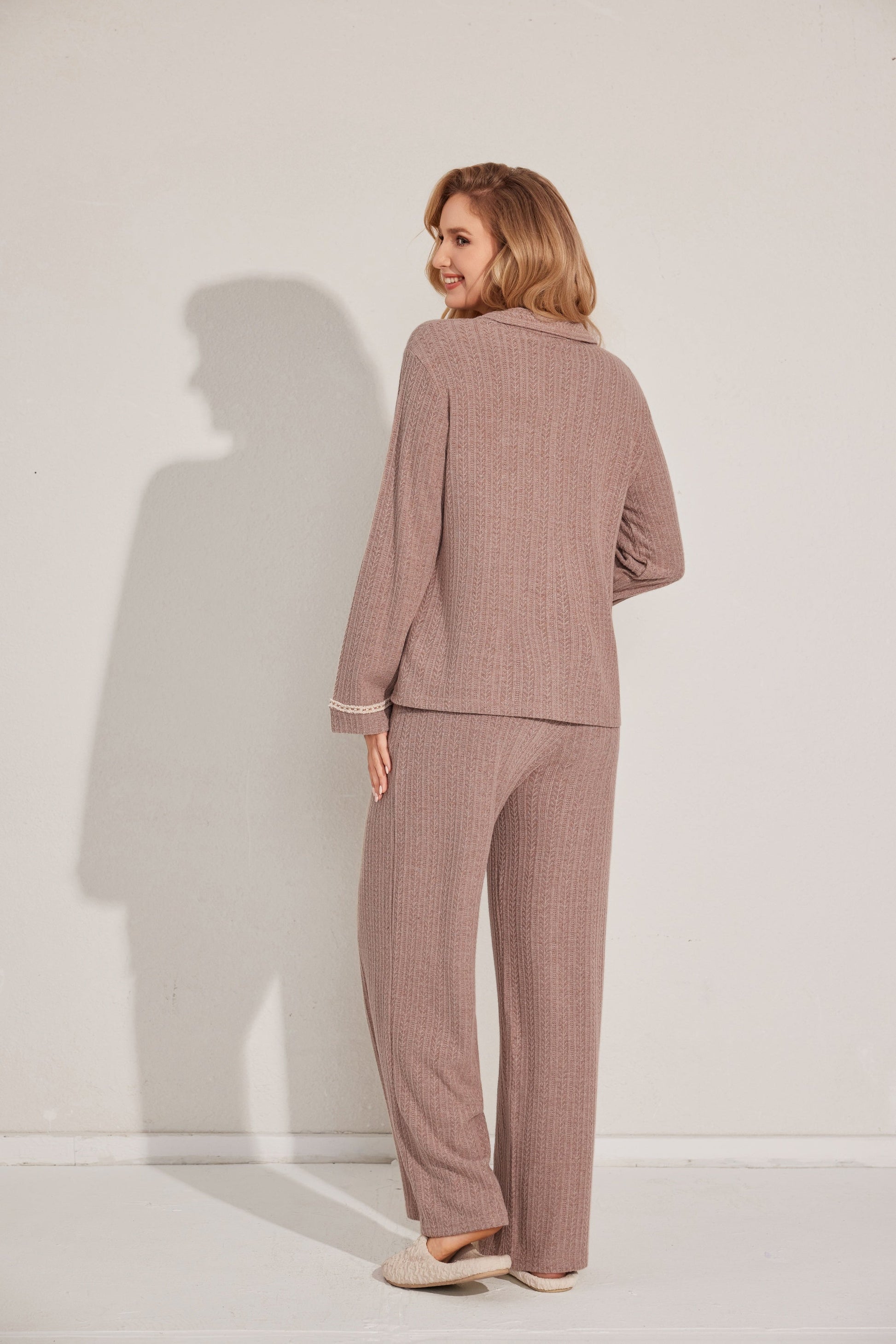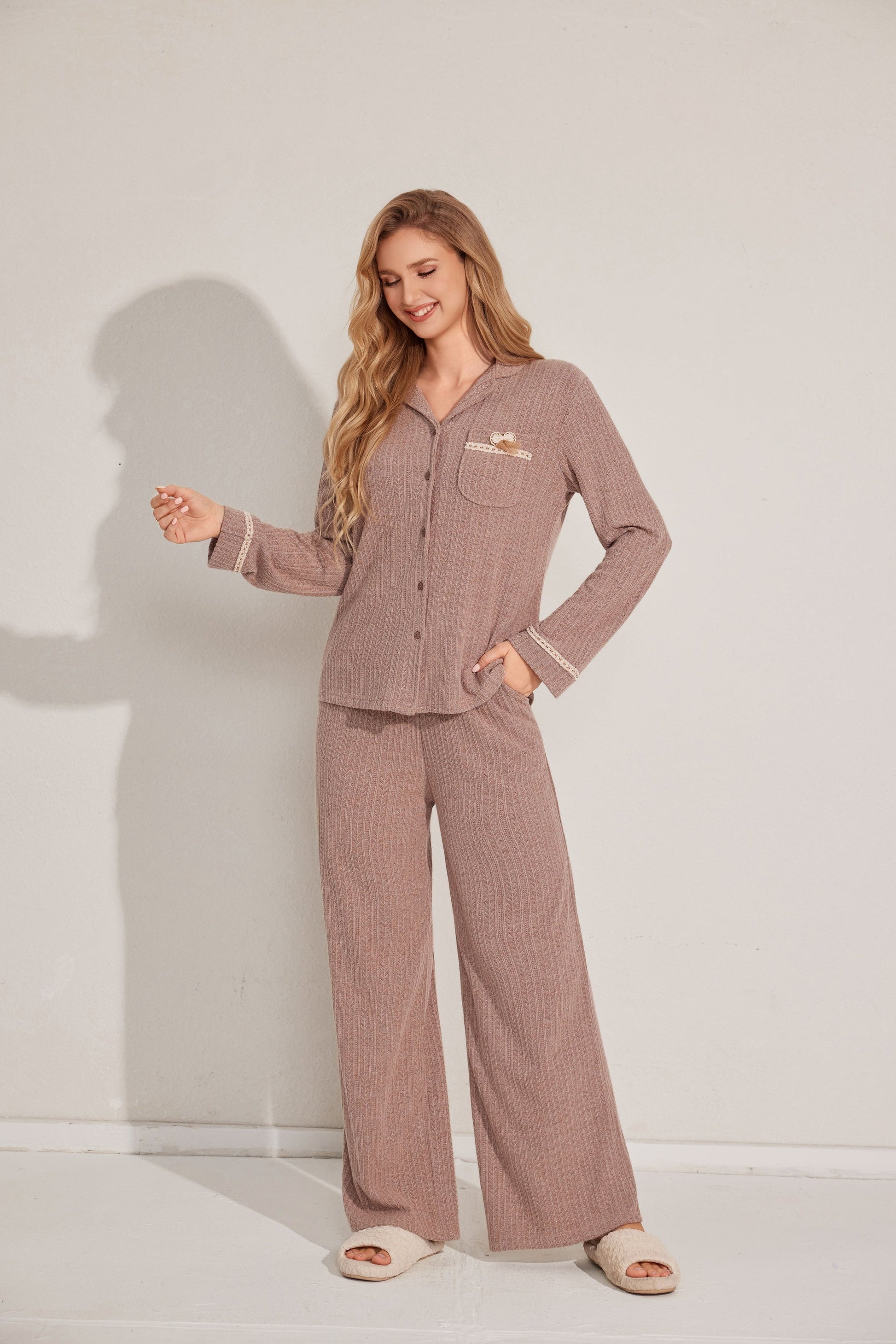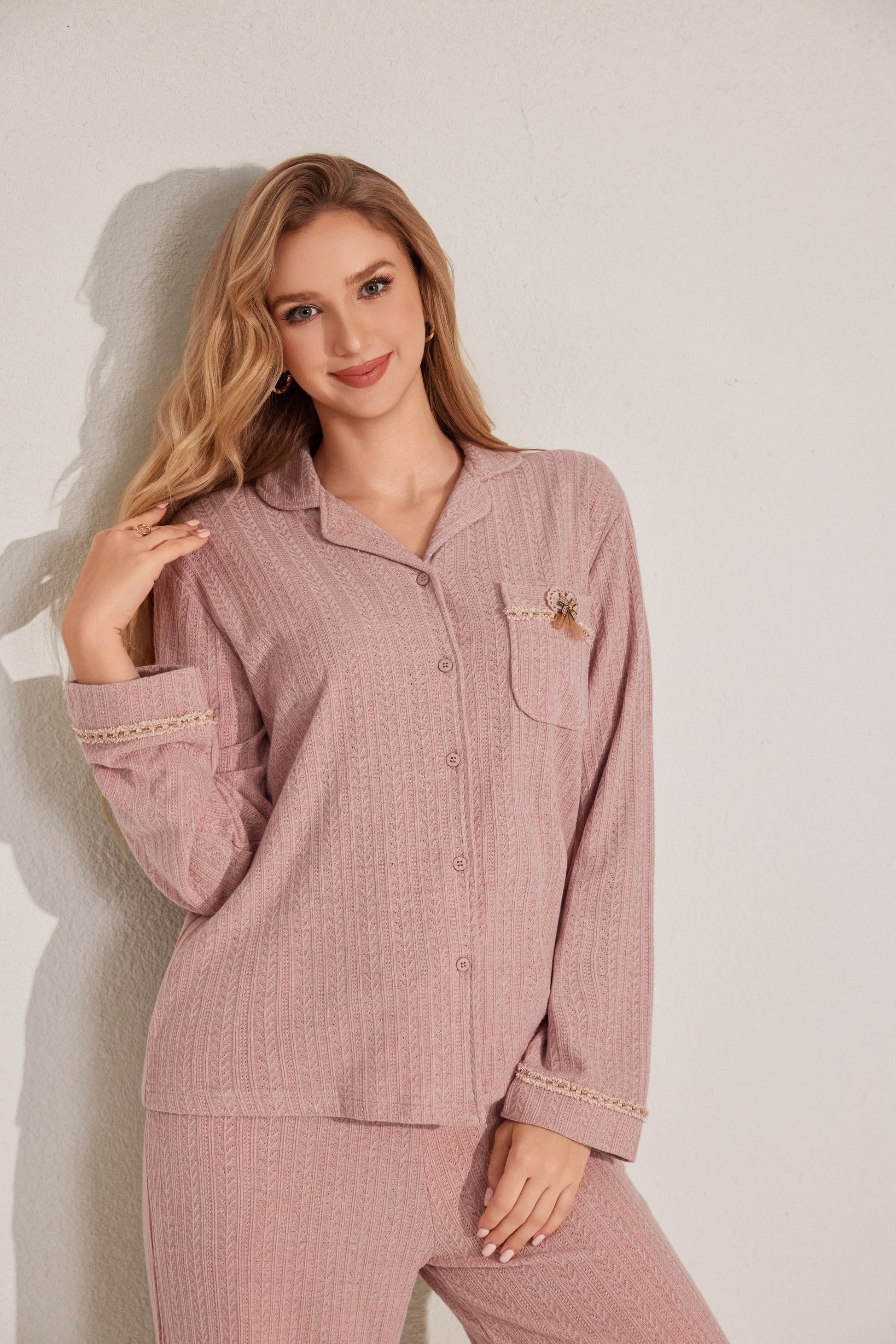 اثنانطقم بيجاما - قطعة مع قميص بأكمام طويلة بأزرار وقيعان مطابقة. شكل مريح لمزيد من الراحة، مصنوع من نسيج ناعم.