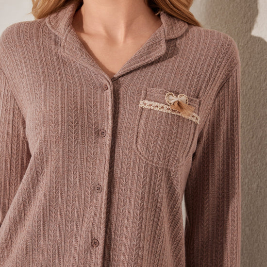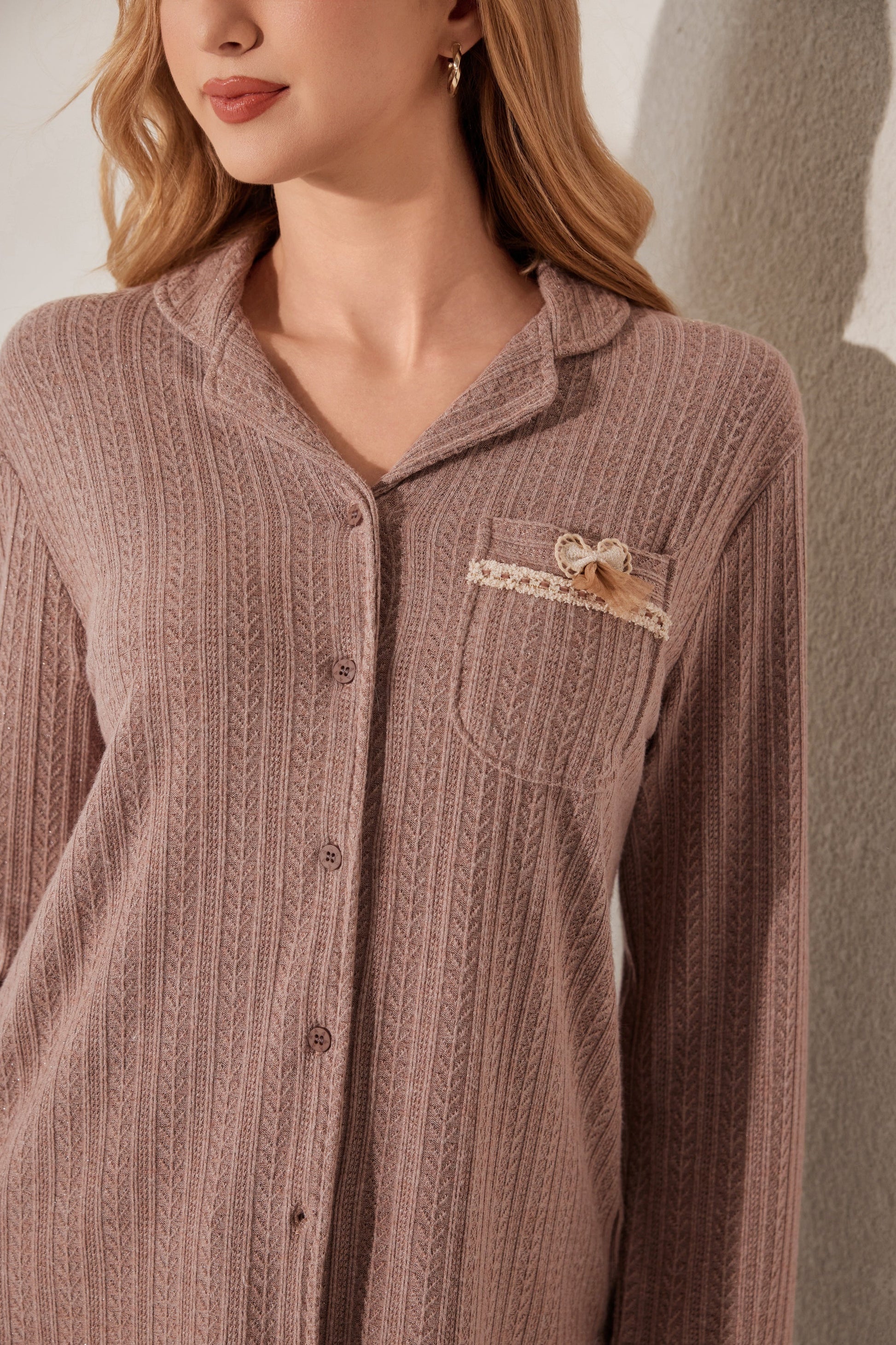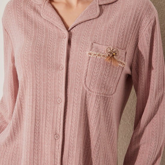 طقم بيجاما مفتوح من الأمام بأكمام طويلة