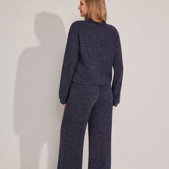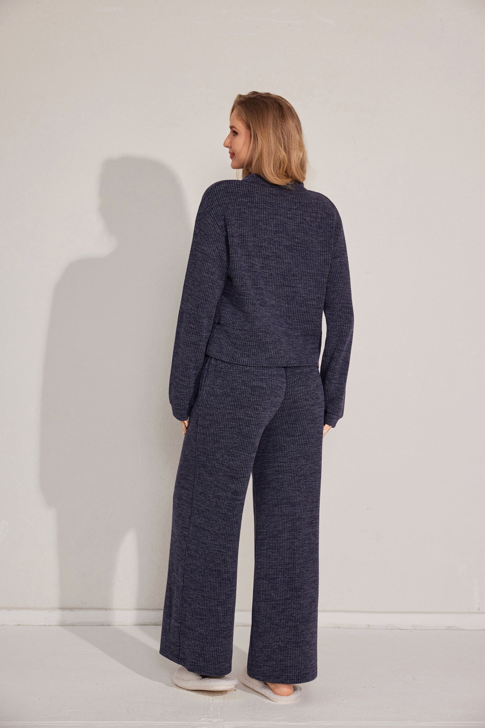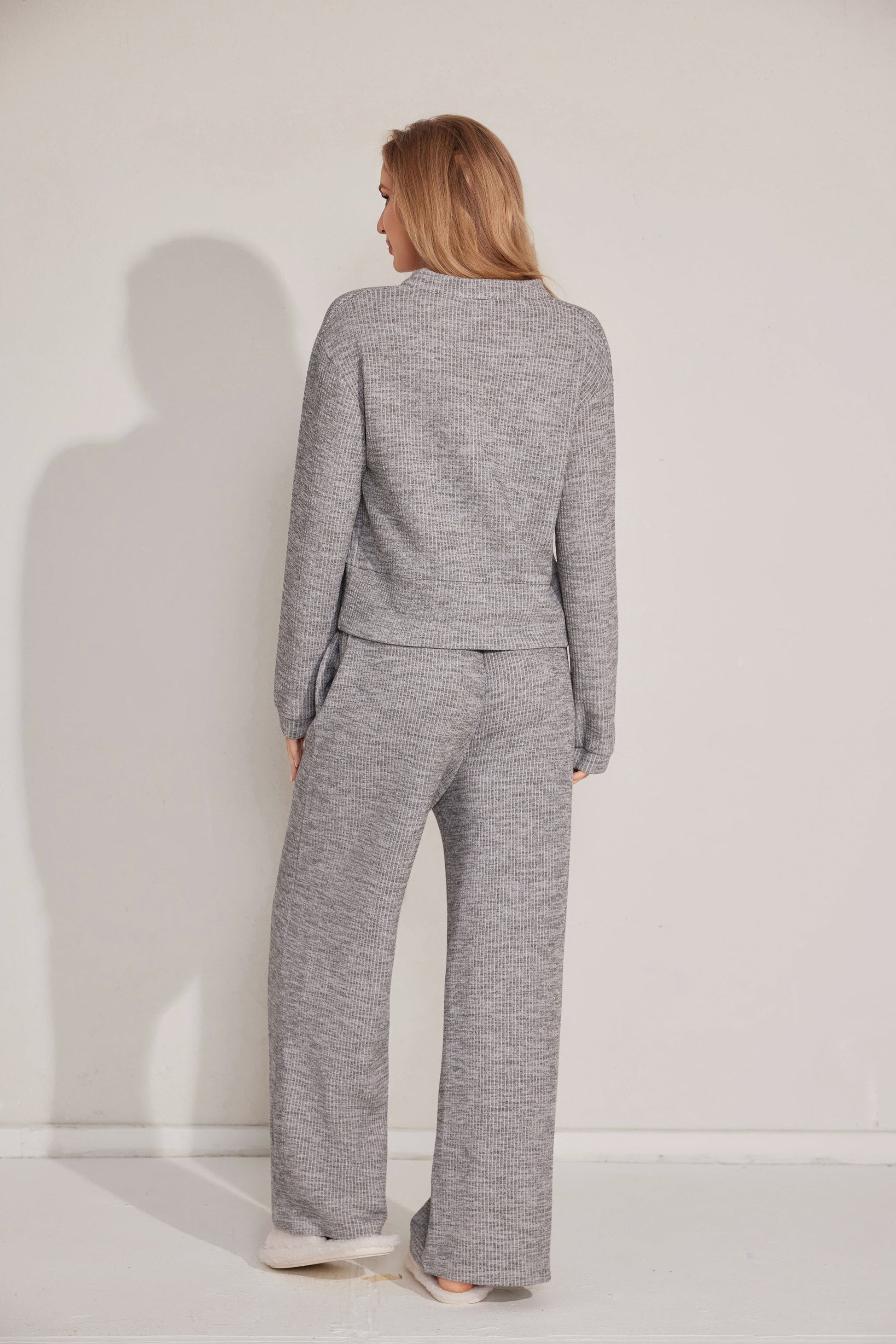 مجموعة بيجامة طويلة الأكمام تتميز بنسيج دقيق على طراز البولكا. مصنوع من قماش المخزون لشعور مريح طوال الليل.