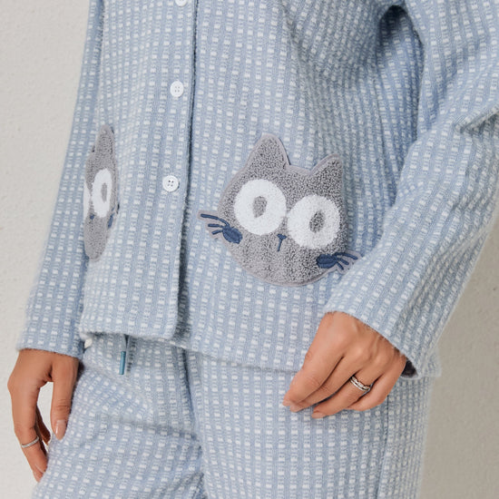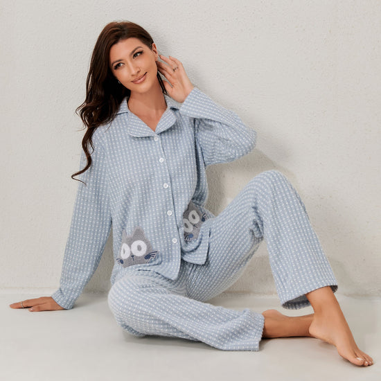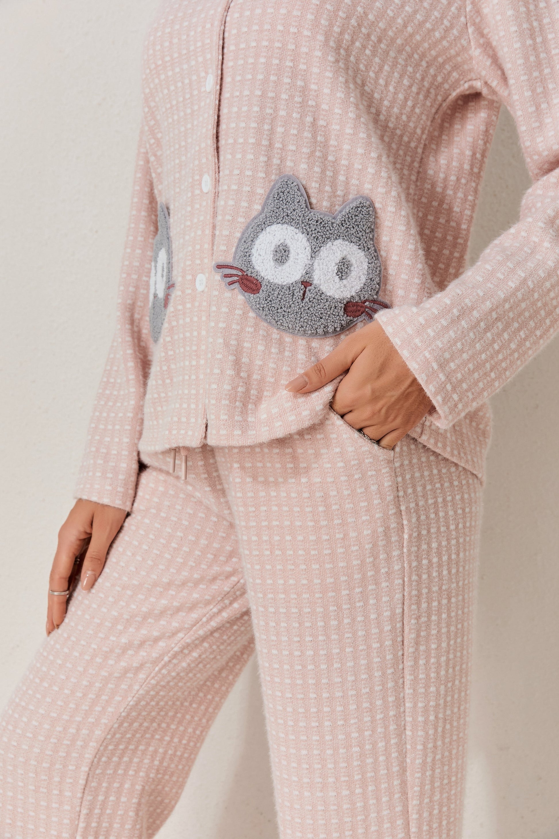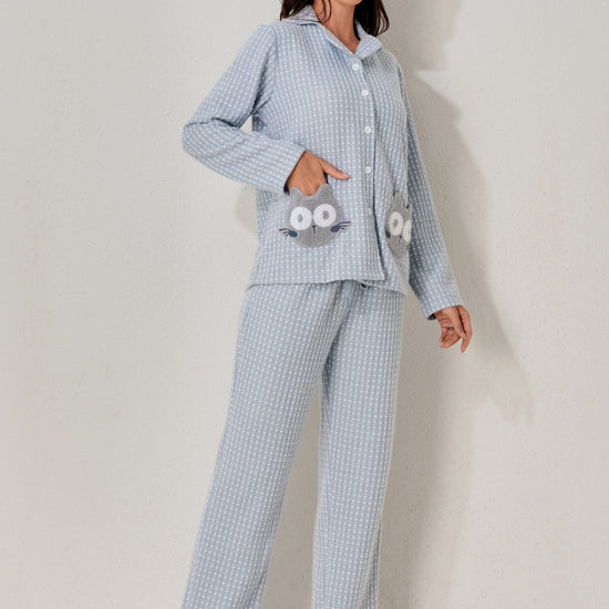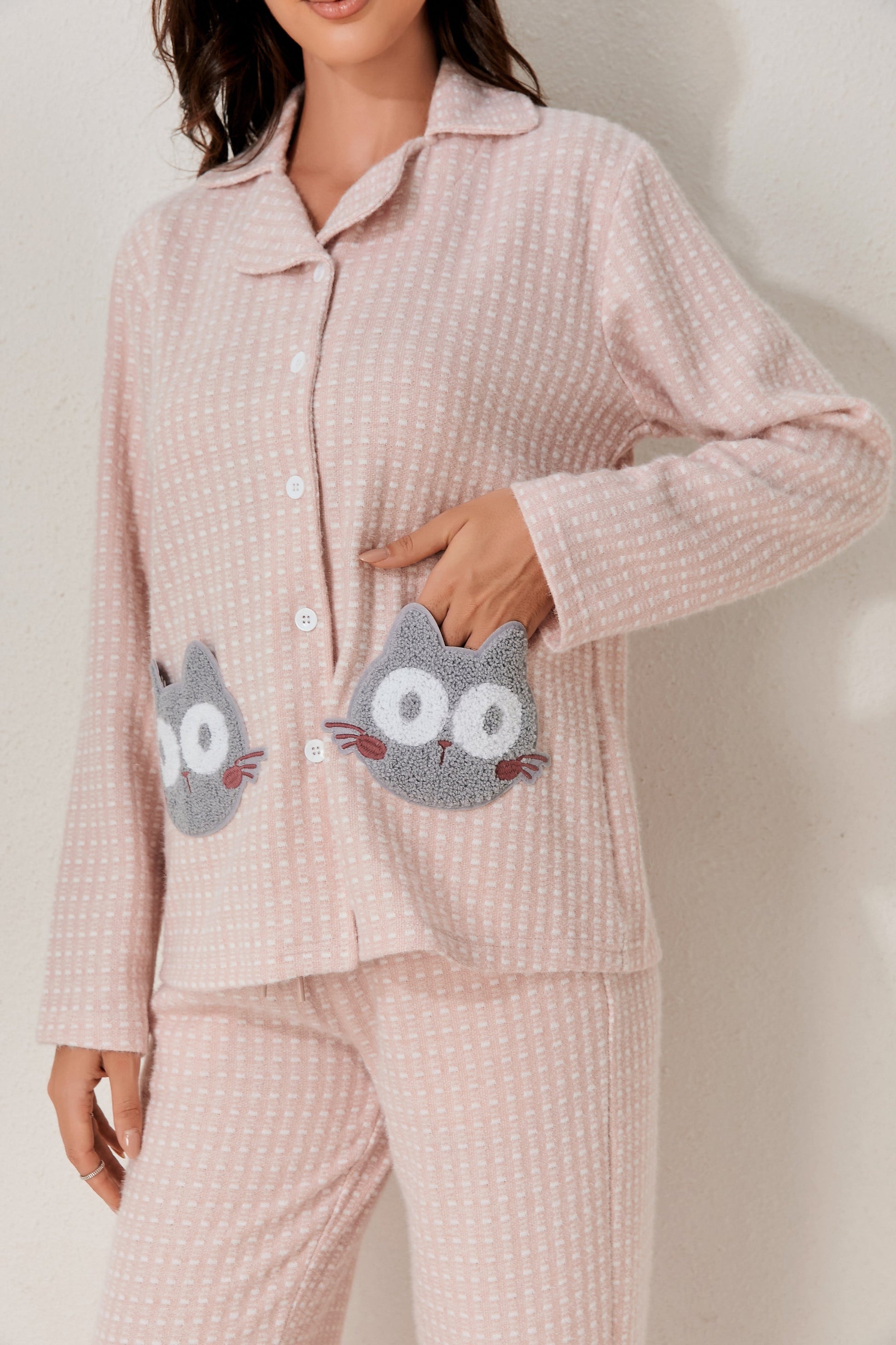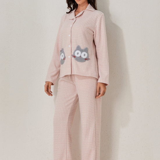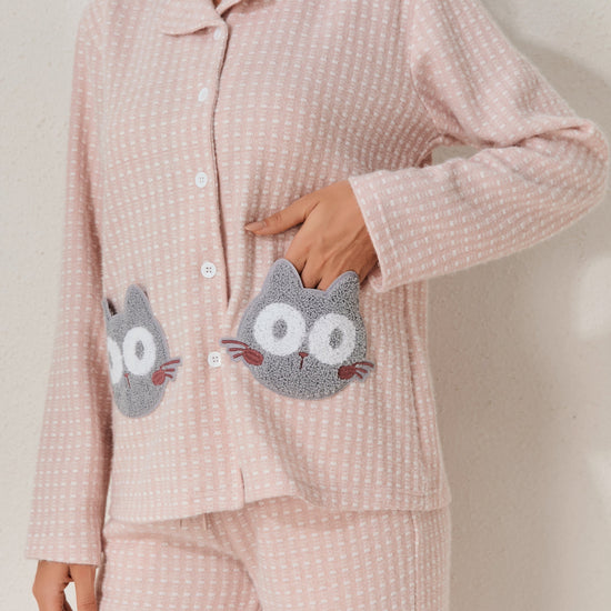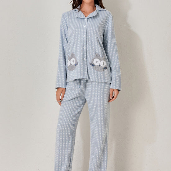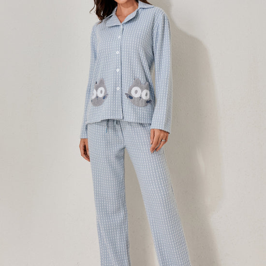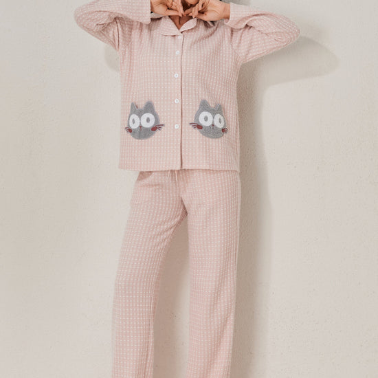 طقم بيجاما بأزرار مفتوحة من قطعتين
