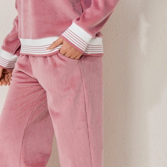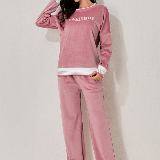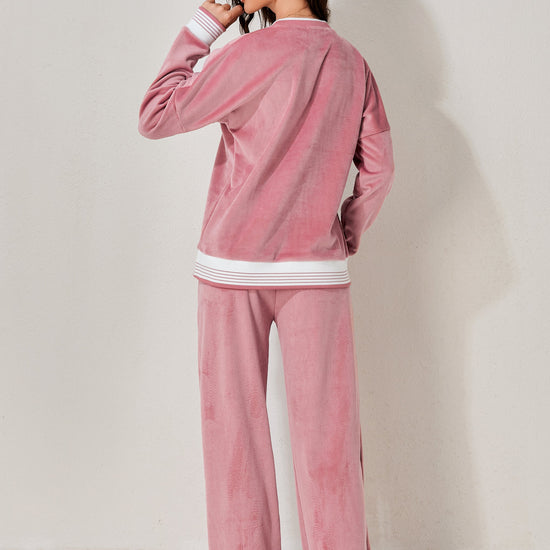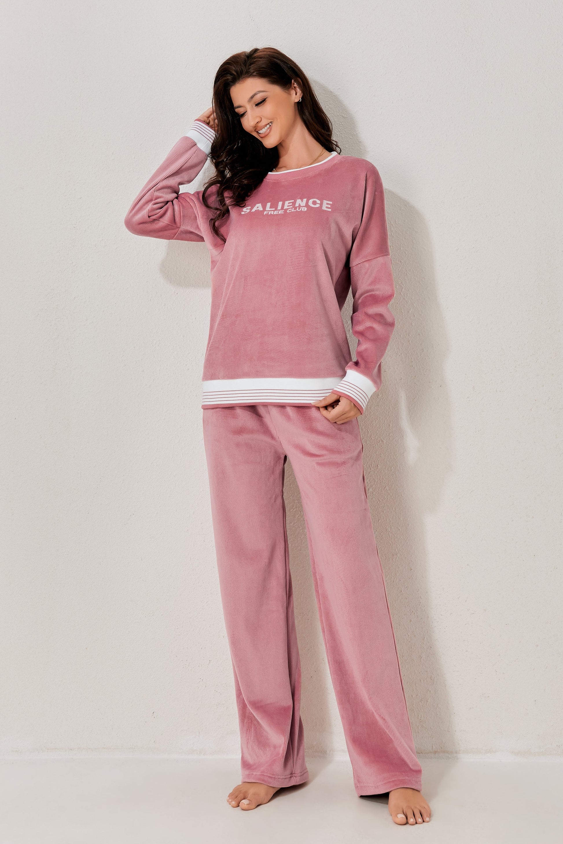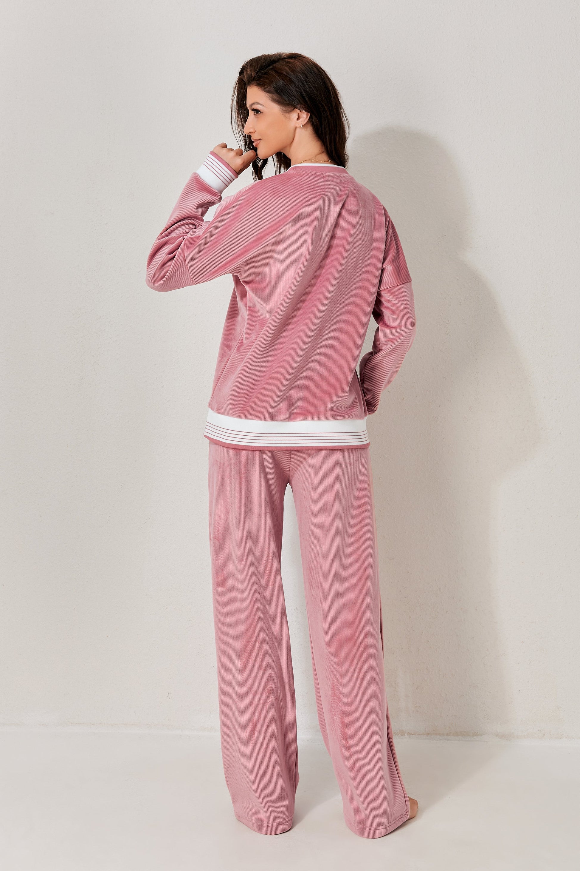 Warm and plush long-sleeve pajama set featuring ribbed cuffs and soft inner fleece. Ideal for colder nights. Made from 35420 Robe fabric 370g.